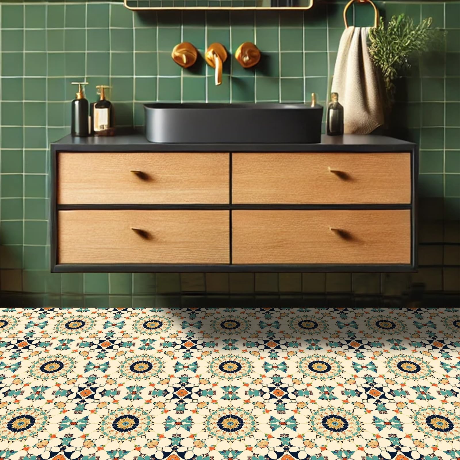 как выглядит 10PCS 12x12 Inch Moroccan Mosaic Peel and Stick Floor Tiles Removable Self Ad... фото