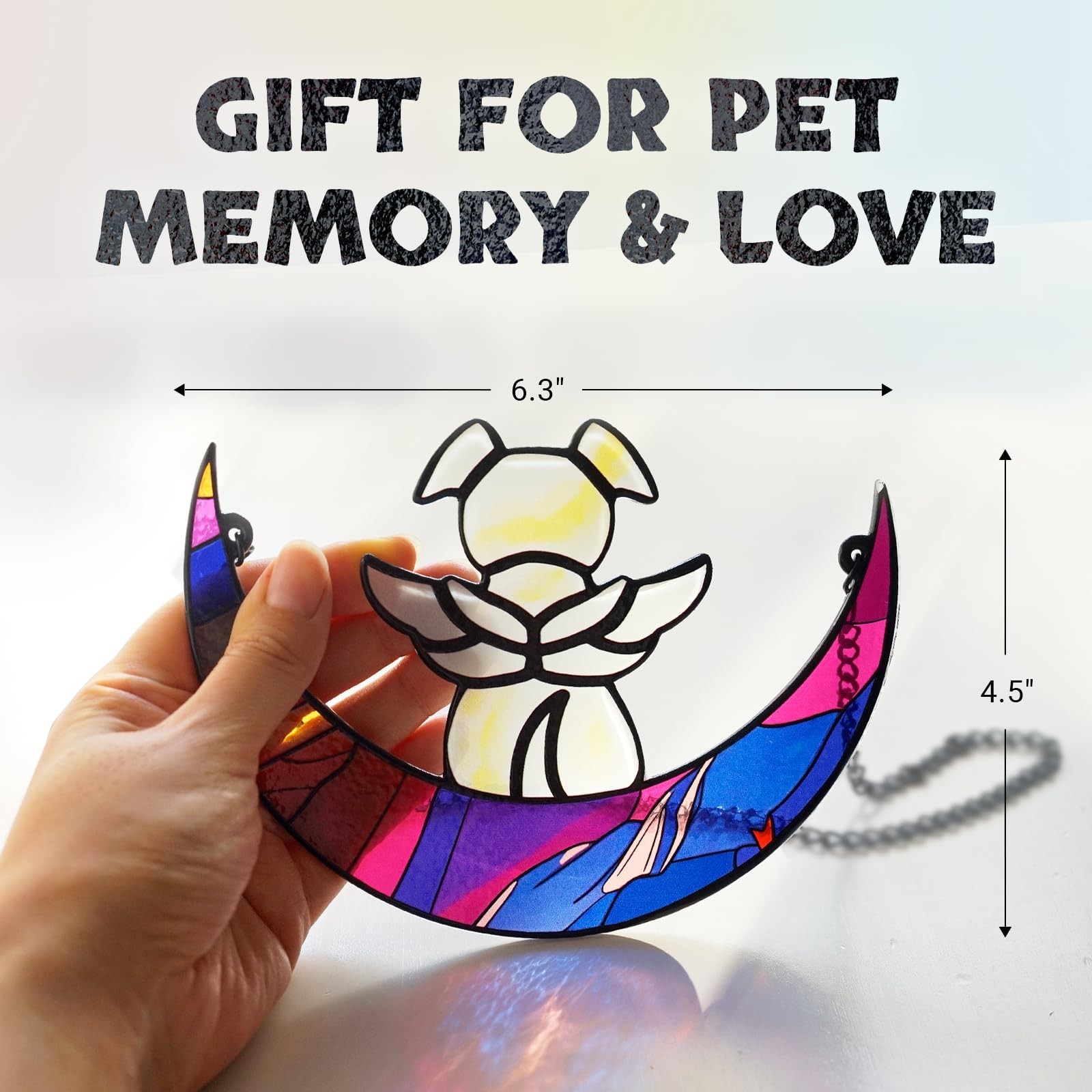 Stained Glass Angel Dog Memorial Suncatcher, Memorial Window Hanging Gifts fo...