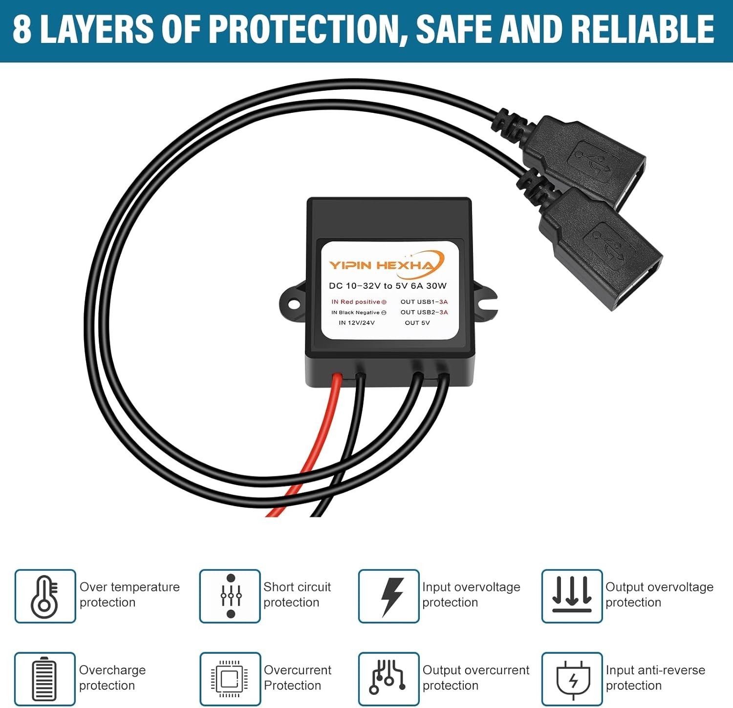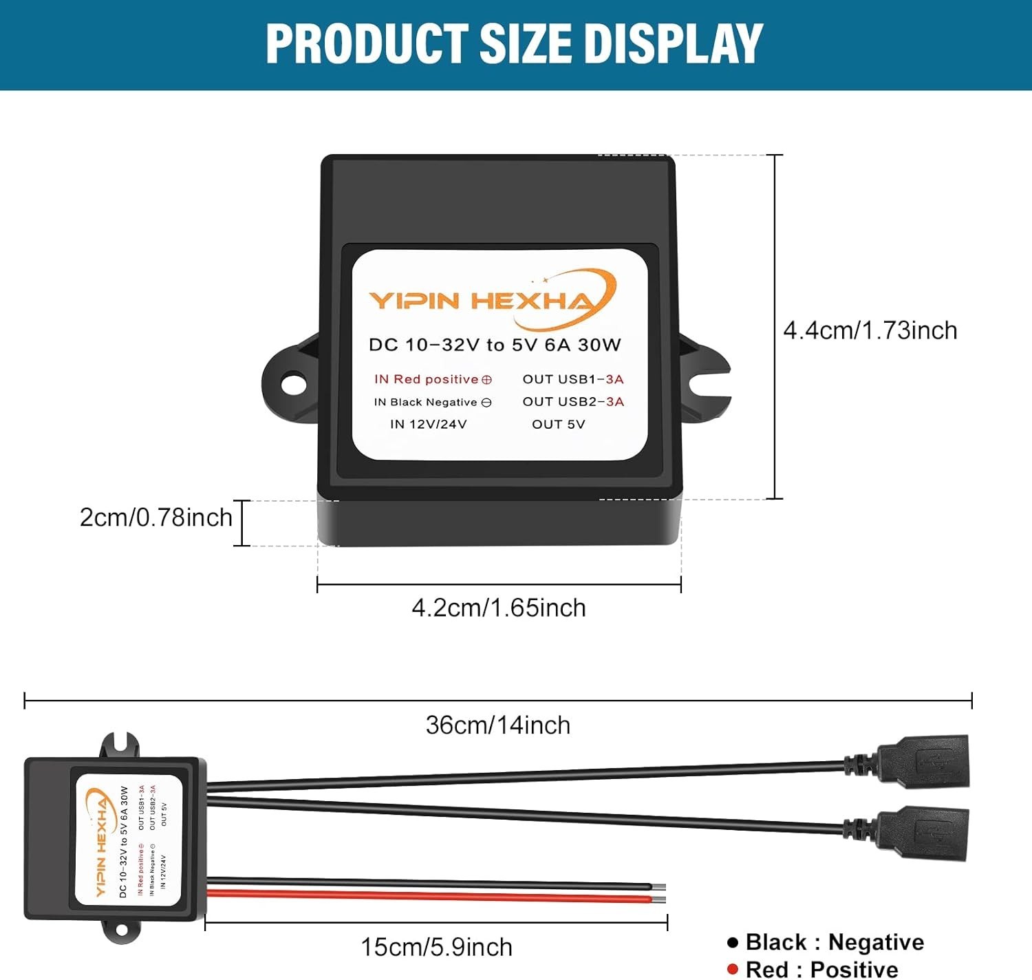 DC Buck Converter 5V 6A 30W Dual USB Power Module for DIY, Solar, Car