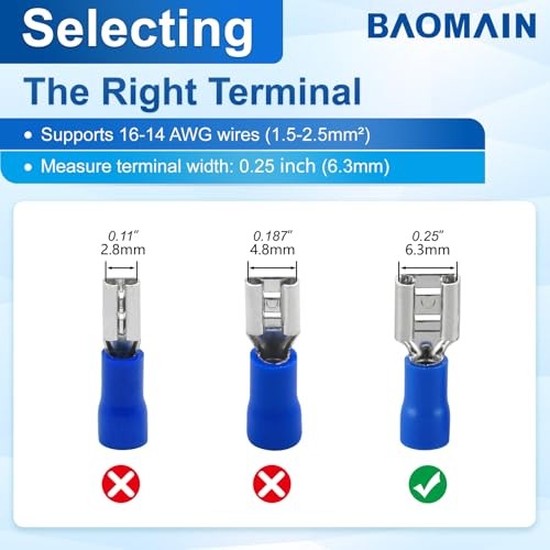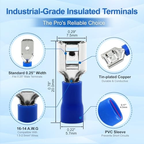 -Pack 1/4 Female Quick Disconnect Spade Terminals, 16-14 AWG 6.3mm 0.25 100