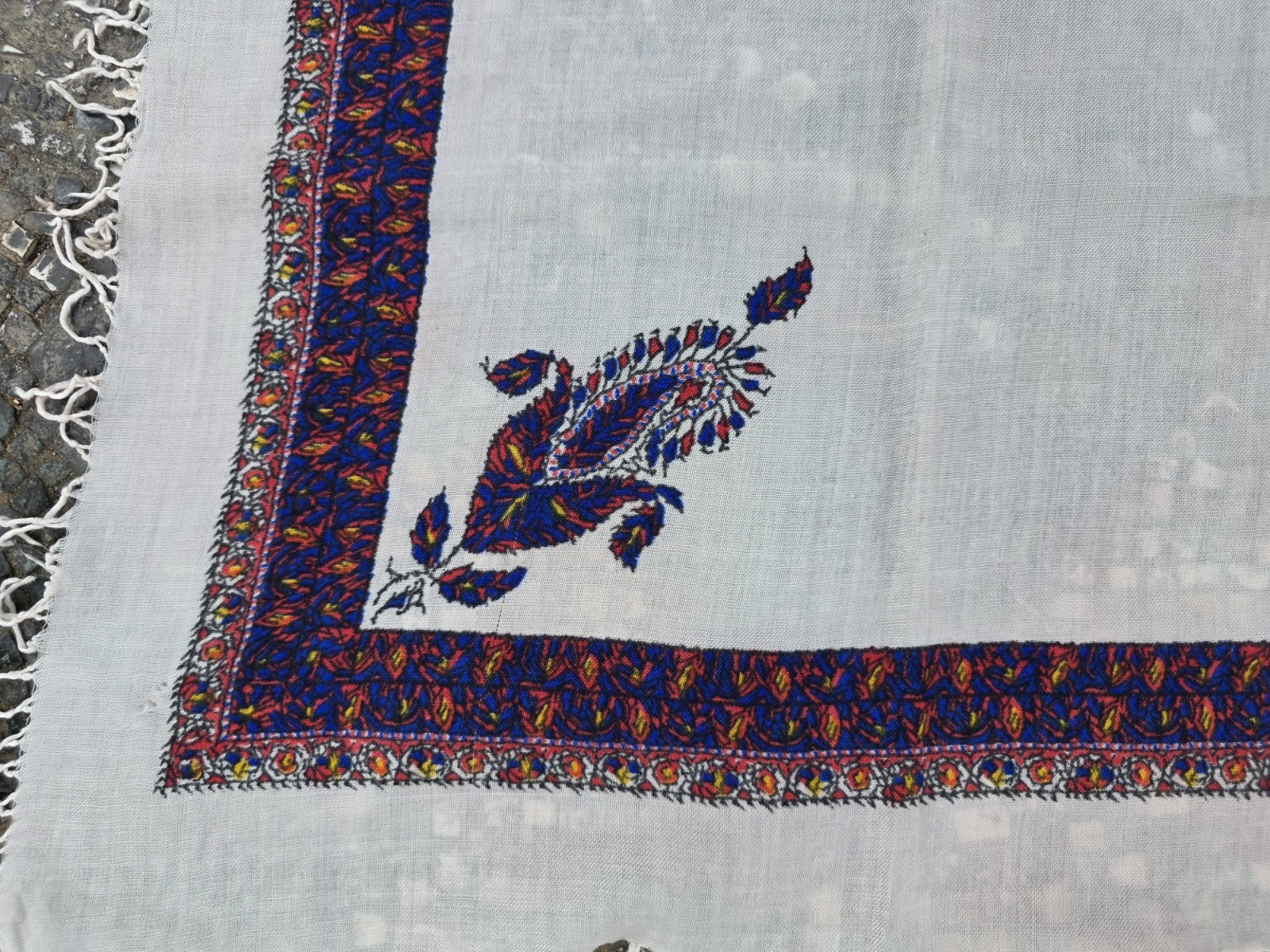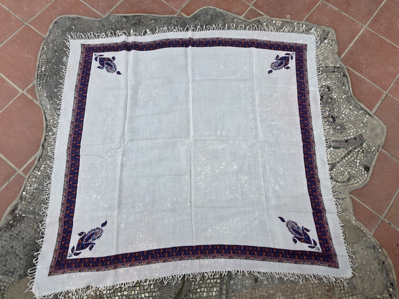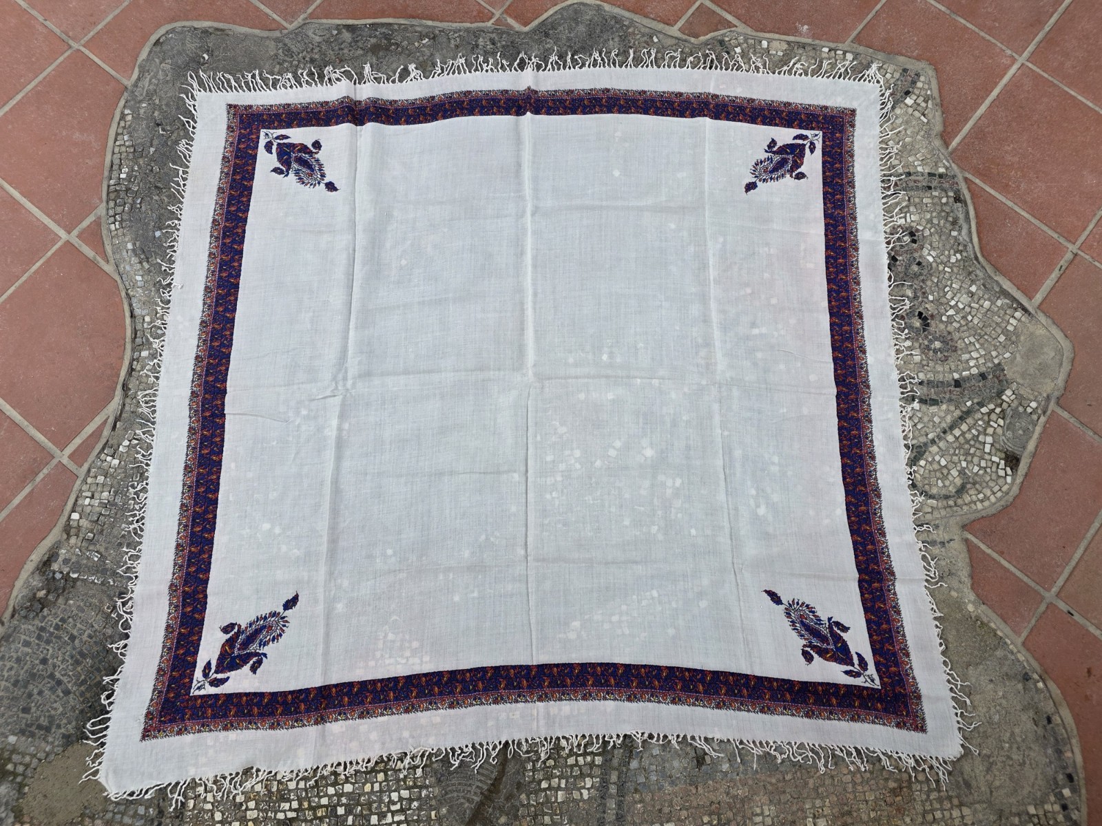 как выглядит Cotton square scarf, vintage paisley border bohemian headscarf, retro accessory фото