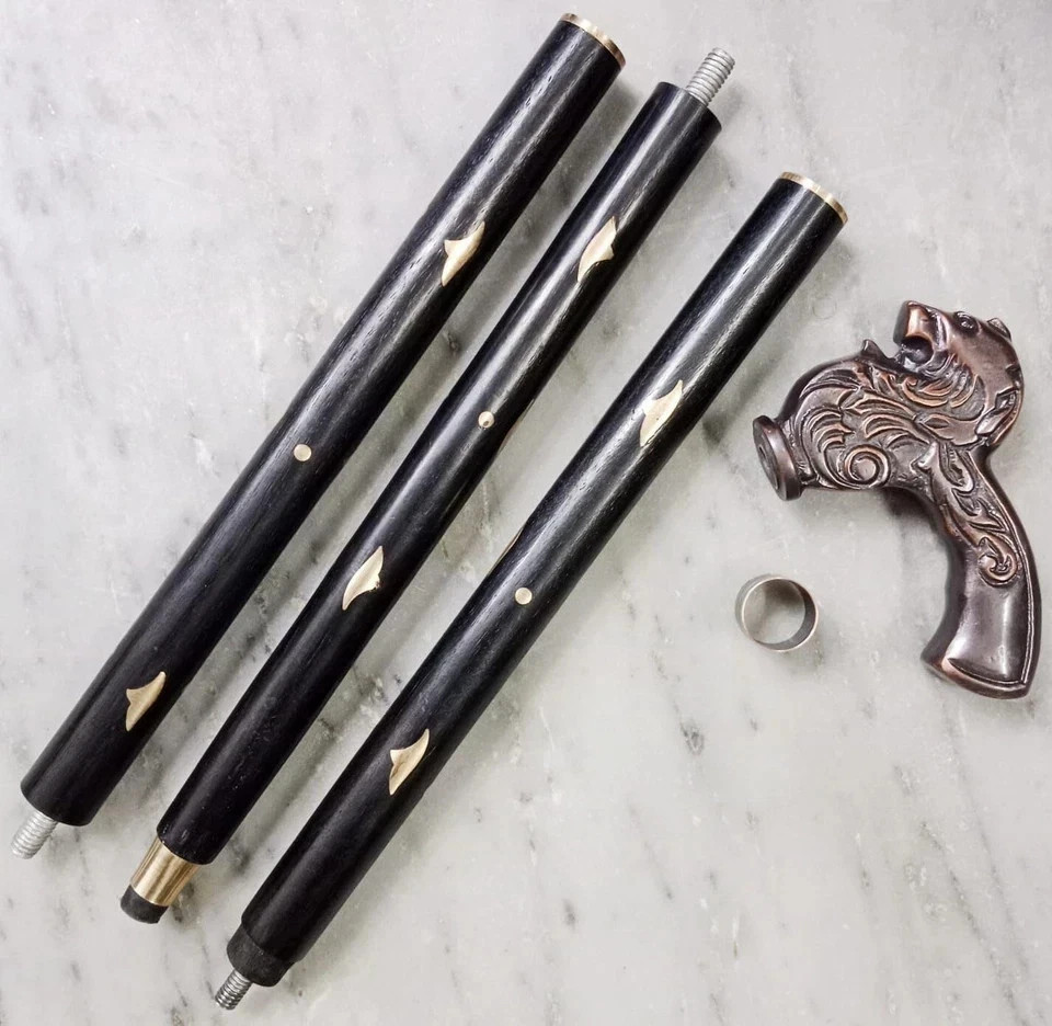 как выглядит Vintage Solid Brass Lion Head Handle Walking Cane Victorian Black Wooden Stick фото