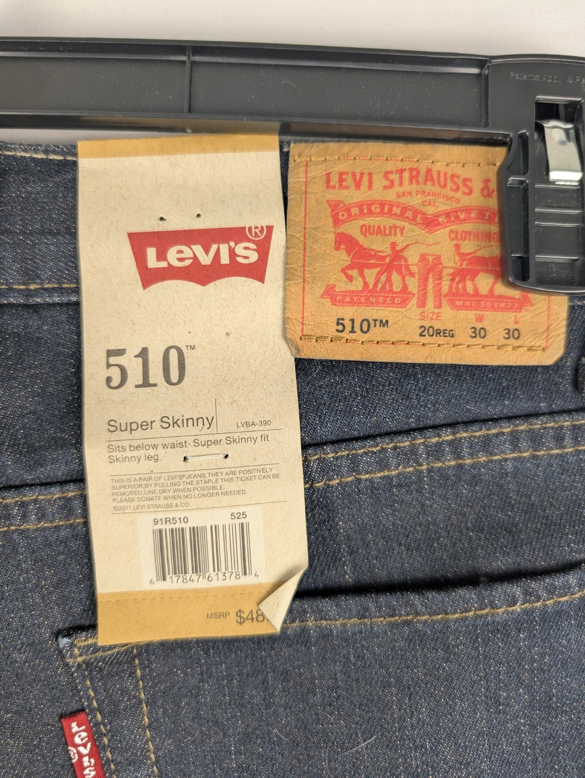 New Levi's 510 Jeans Boys 20 Reg 30x30 Blue Super Skinny
