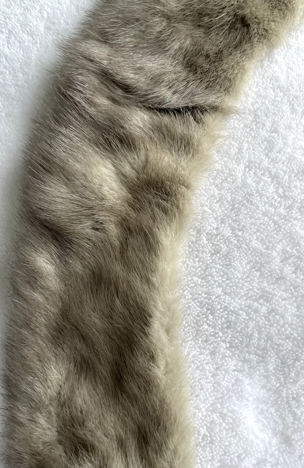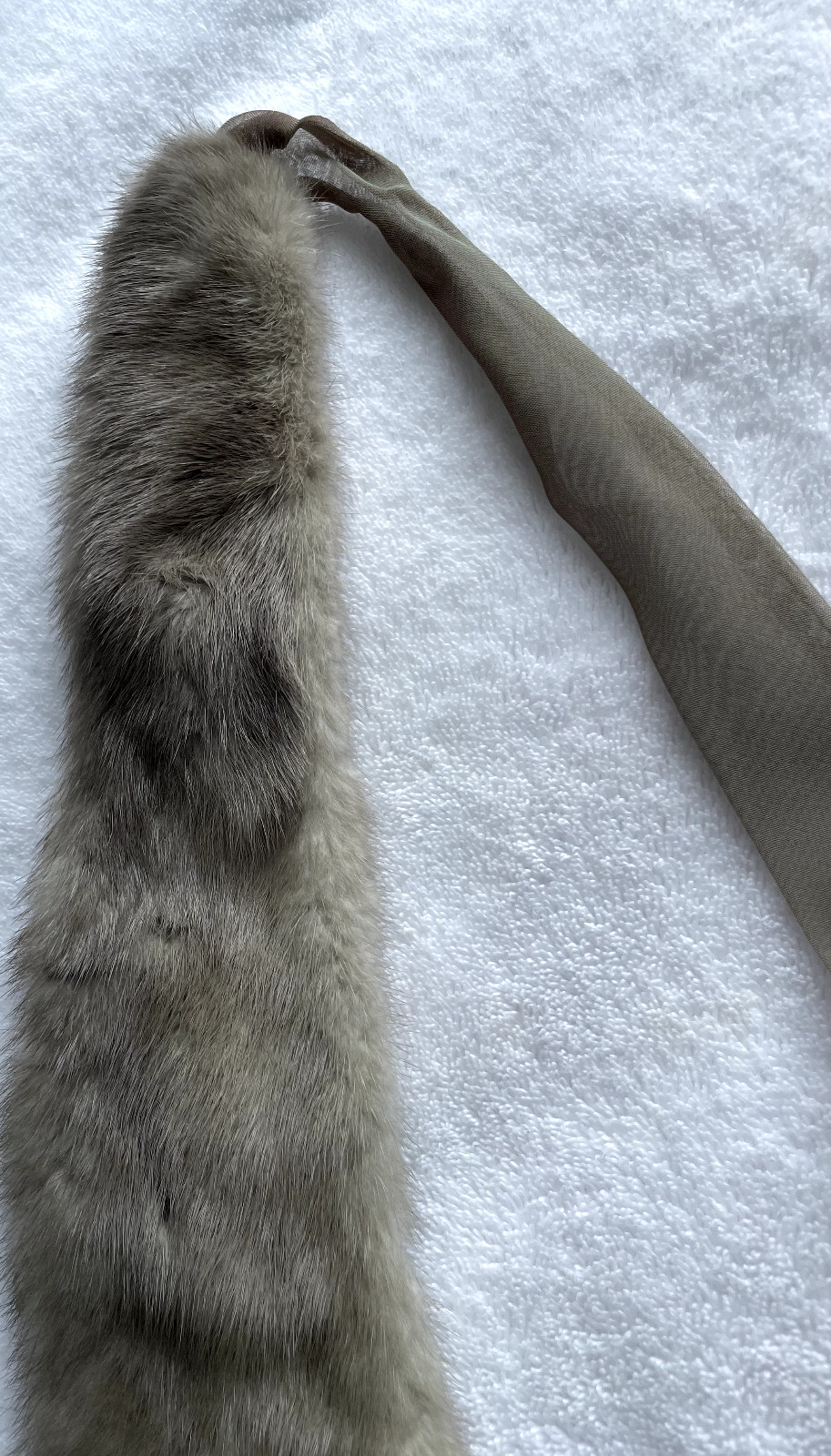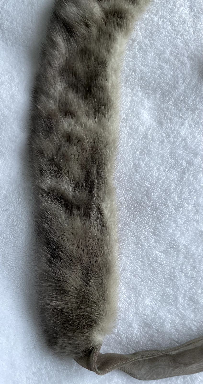 Vintage Real Mink Beige/Gray Collar w/Ribbon Tie