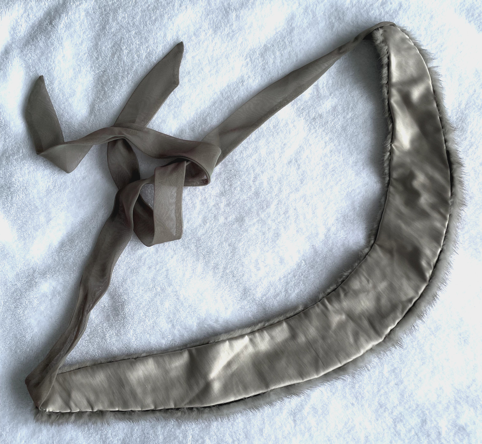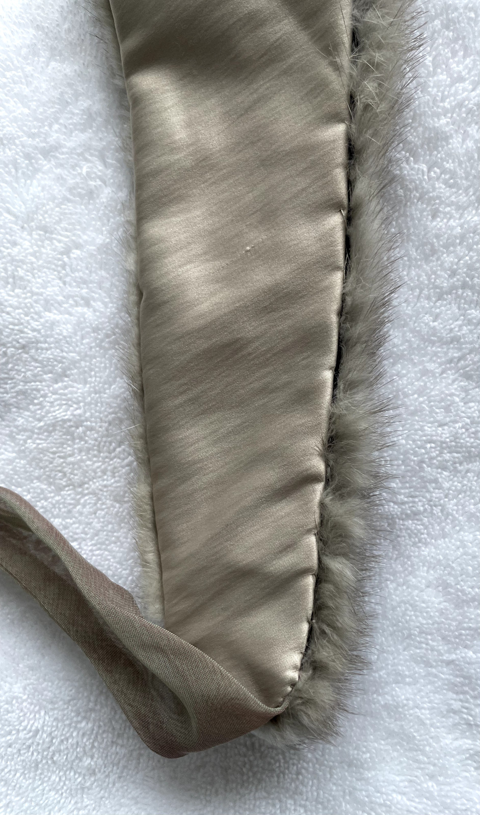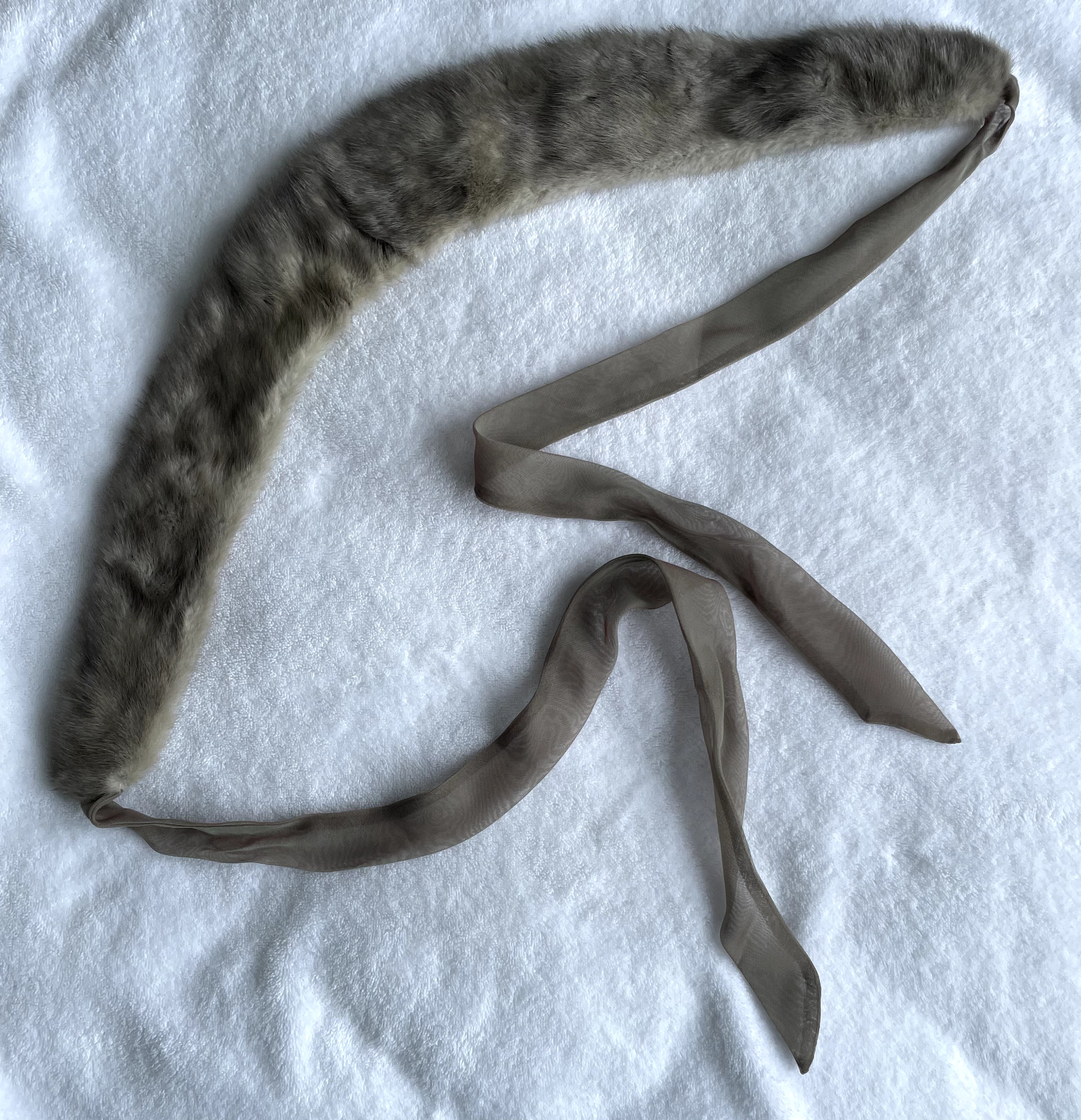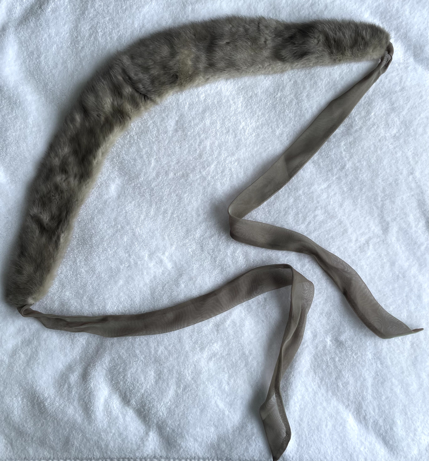Vintage Real Mink Beige/Gray Collar w/Ribbon Tie