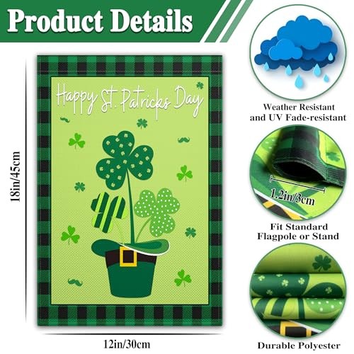 Happy St Patricks Day Garden Flags 12x18 Inch Double Sided Irish Garden Flag
