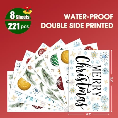 221 PCS Christmas Window Cling Sticker, Xmas Balls Branches Snow for Home