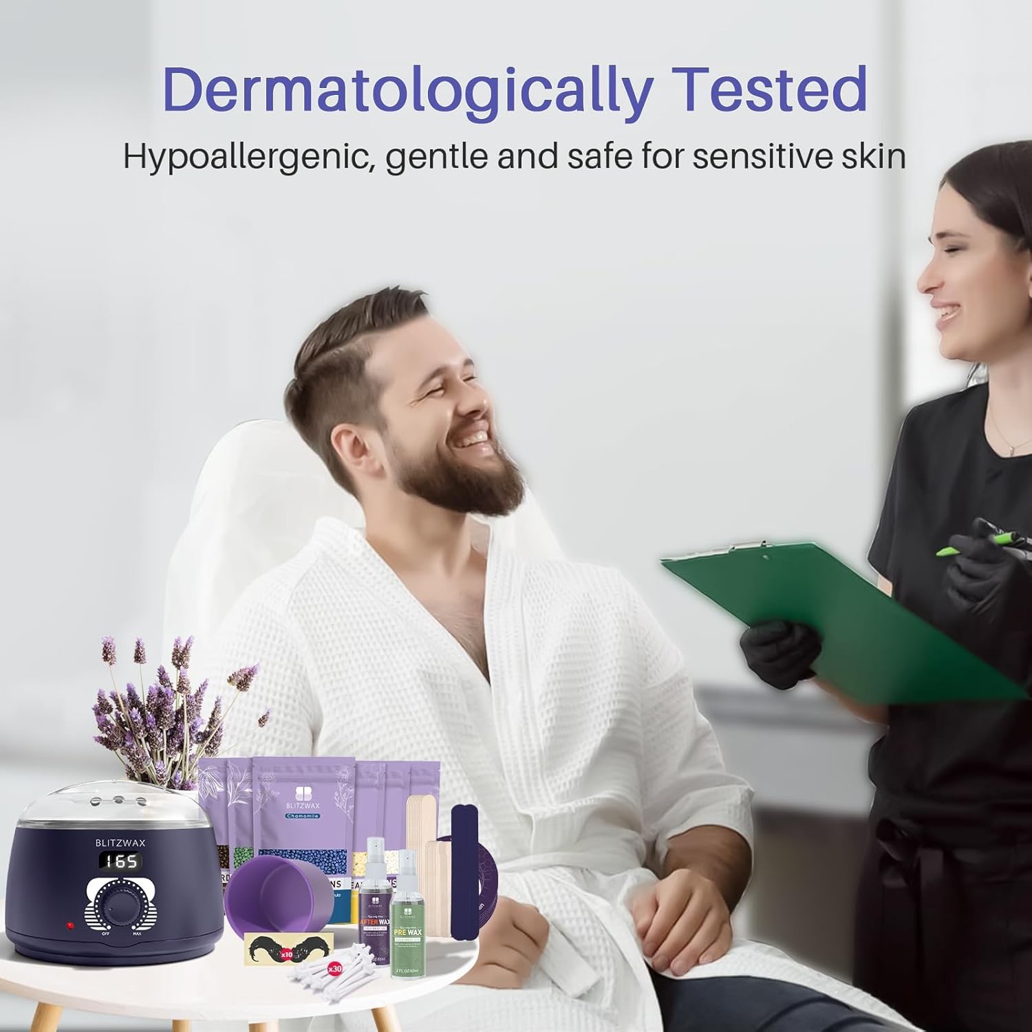 BLITZWAX Waxing Kit for Men, Hard Wax Warmer for Face, Arms, Legs