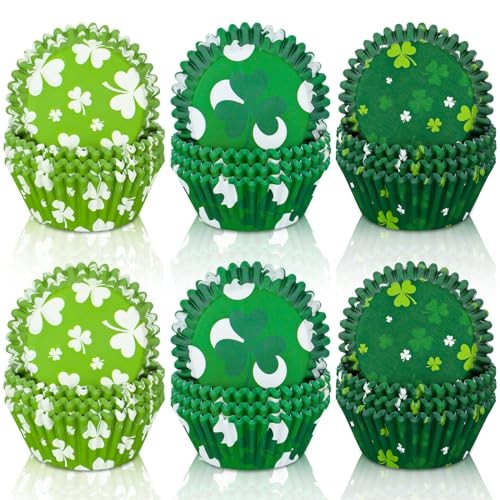 600Pcs St. Patrick's Day Cupcake Liners Shamrock Print Baking Cups Holders