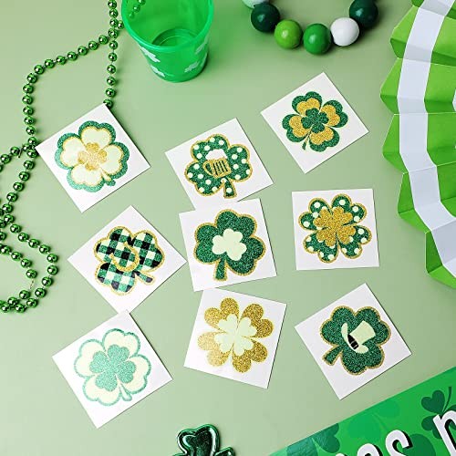 72 Pieces Glitter Shamrock Temporary Tattoos St. Patrick's Day Tattoos Lucky