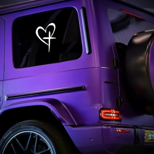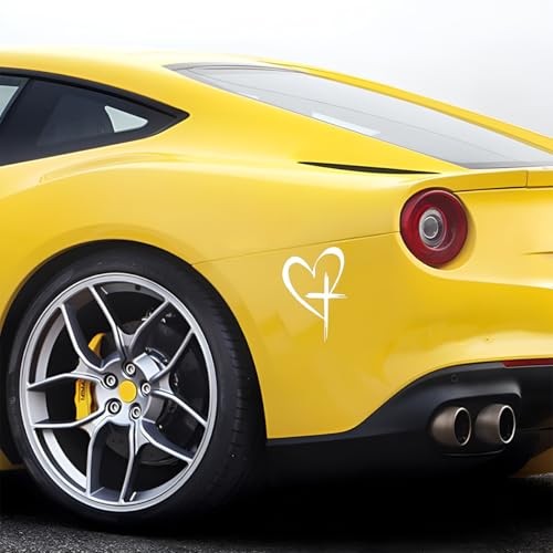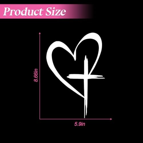 Love Cross Car Sticker, 8.7'' x 6'' Faith Hope Heart Vehicle Bumper Big White