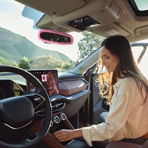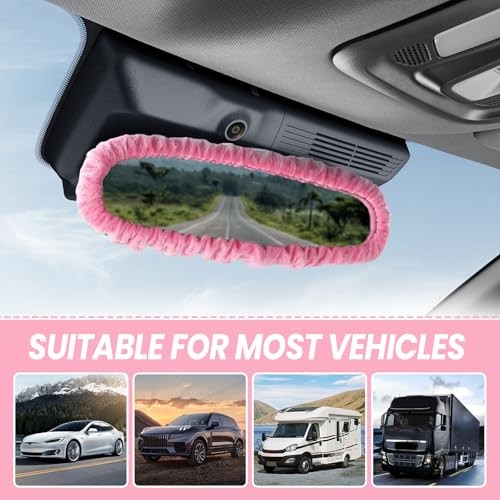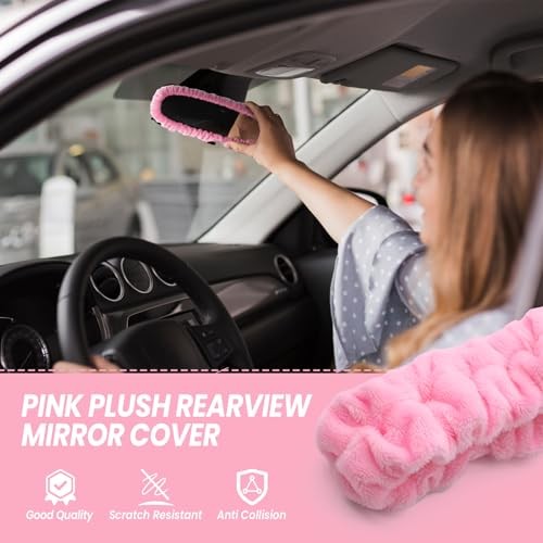 Car Rearview Mirror Cover, Pink Plush Elasticity Rear View Mirror Decorative