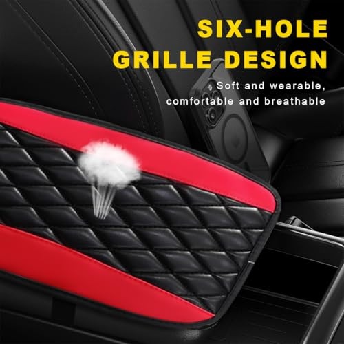 Car Center Console Cushion Pad, 12.6 7.5 Waterproof Leather Black Red