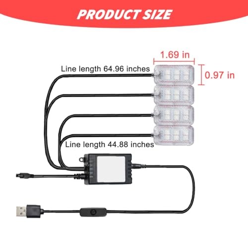 Car Interior LED Lights, 8 in 1 4PCS Vehicle Ambient Lamp USB Interface