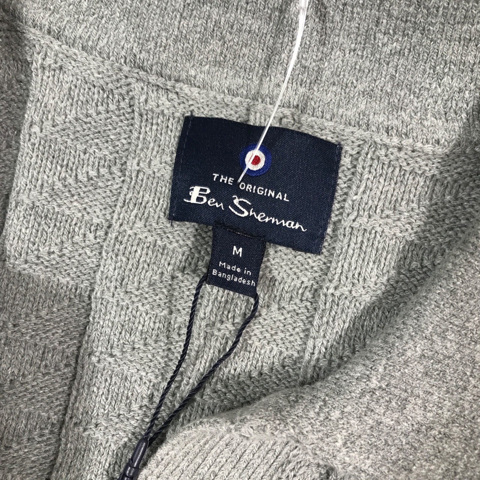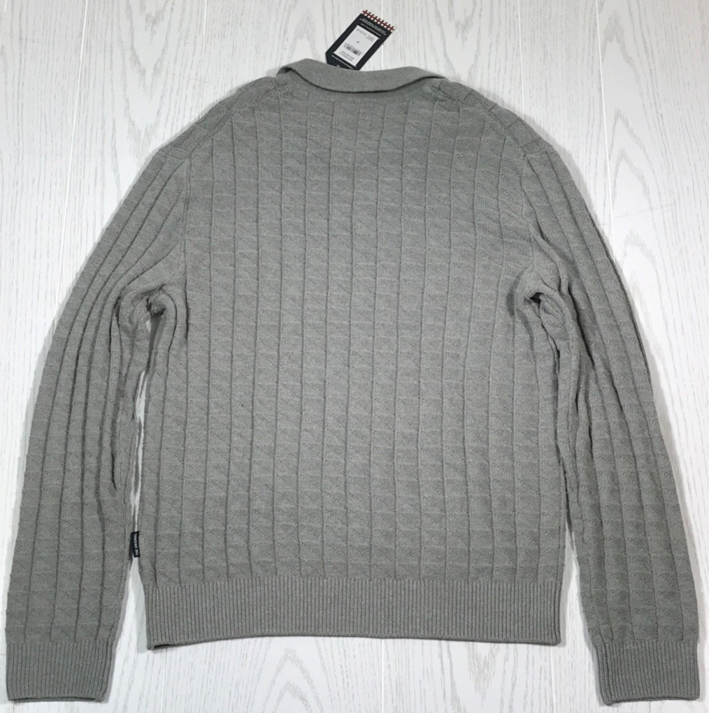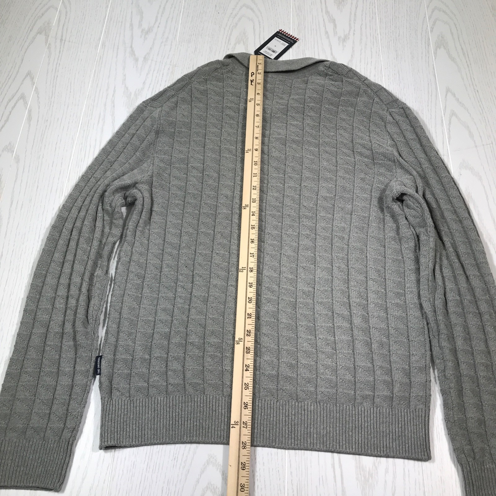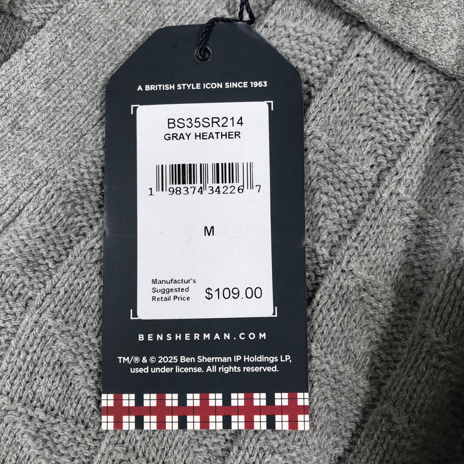 Ben Sherman Johnny Collar Textured Knit Sweater Men M Gray Long Sleeve New 109