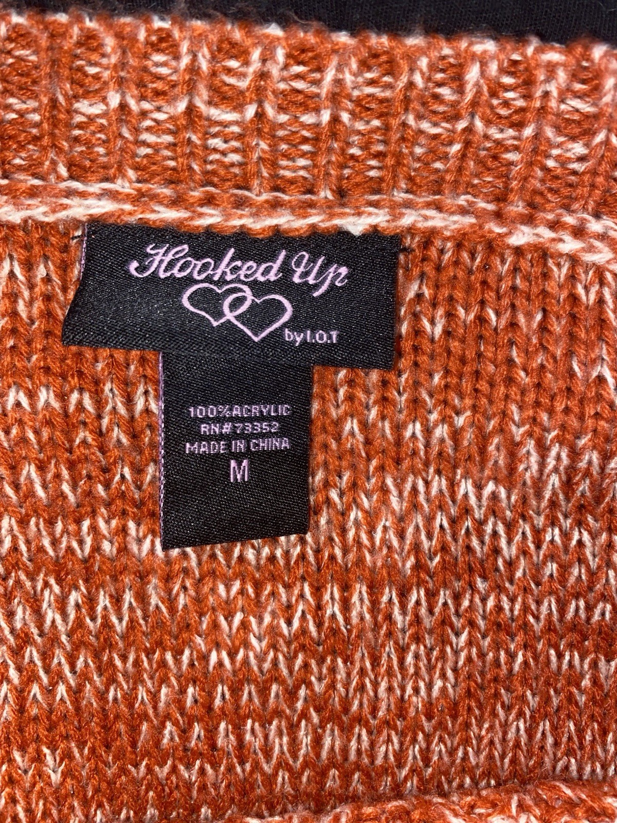 как выглядит Hooked Up by I.O.T. Women s Burnt Orange Rust Cable Knit Sweater w/ Zippers фото