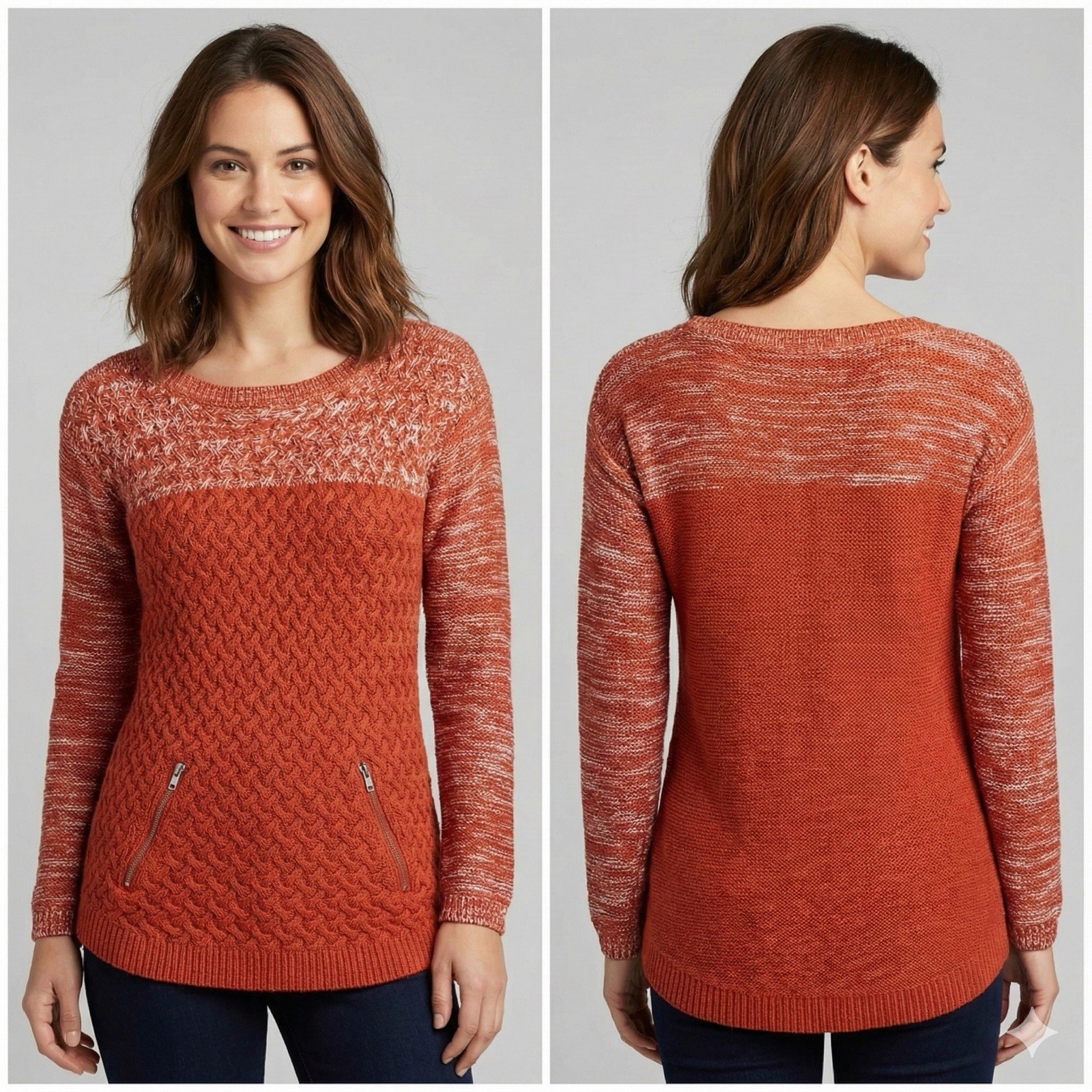 Hooked Up by I.O.T. Women s Burnt Orange Rust Cable Knit Sweater w/ Zippers