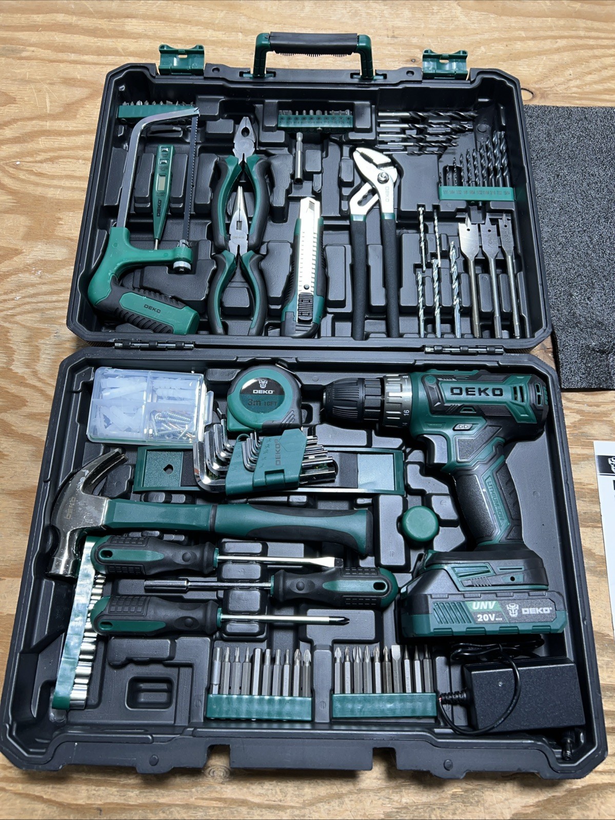 как выглядит Green Drill Tool Kit Set:20V Cordless Power Drill Tool Box with Battery Electric фото