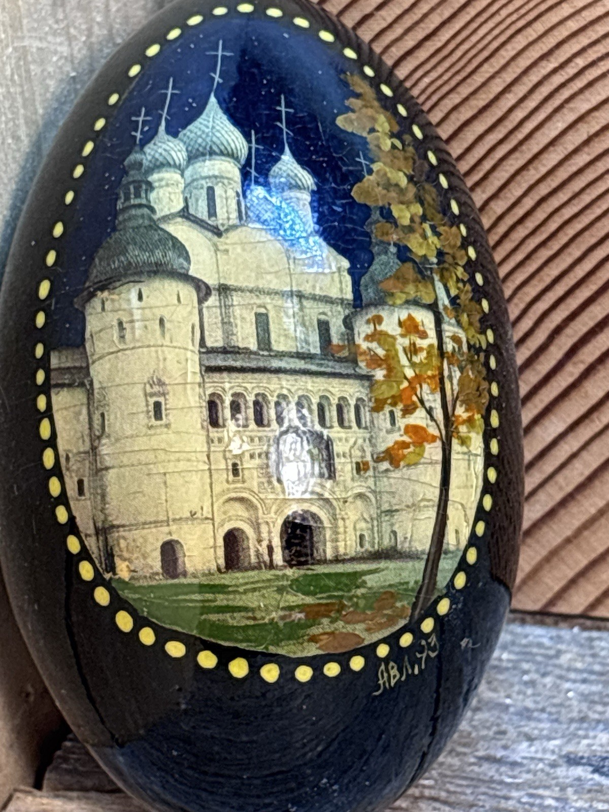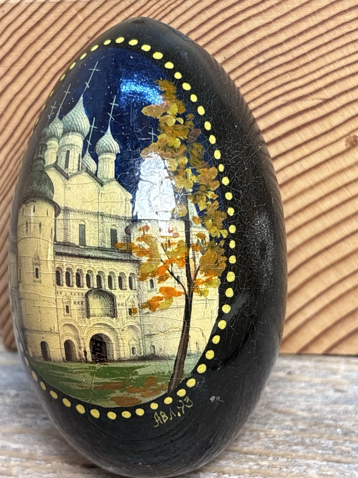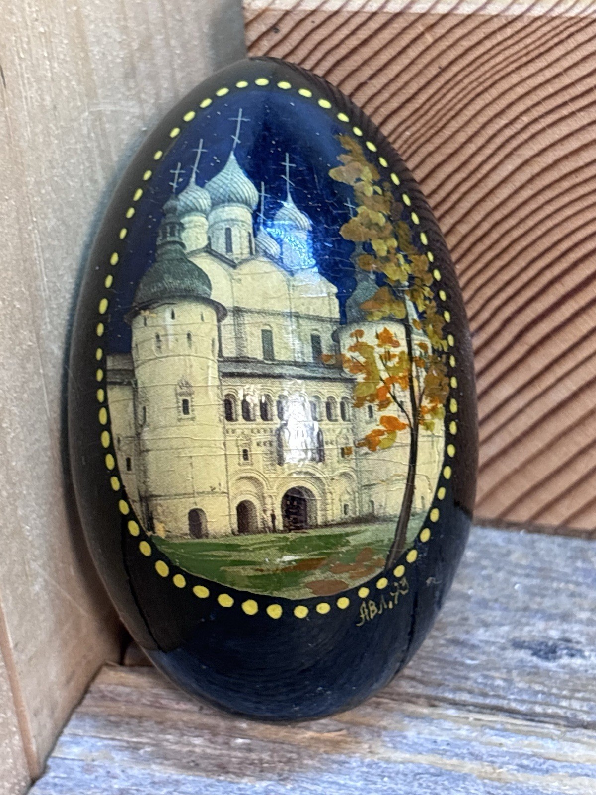 • Beautiful Vintage Russian Hand Painted Lacquer Wooden Egg Signed A.B.A 93
