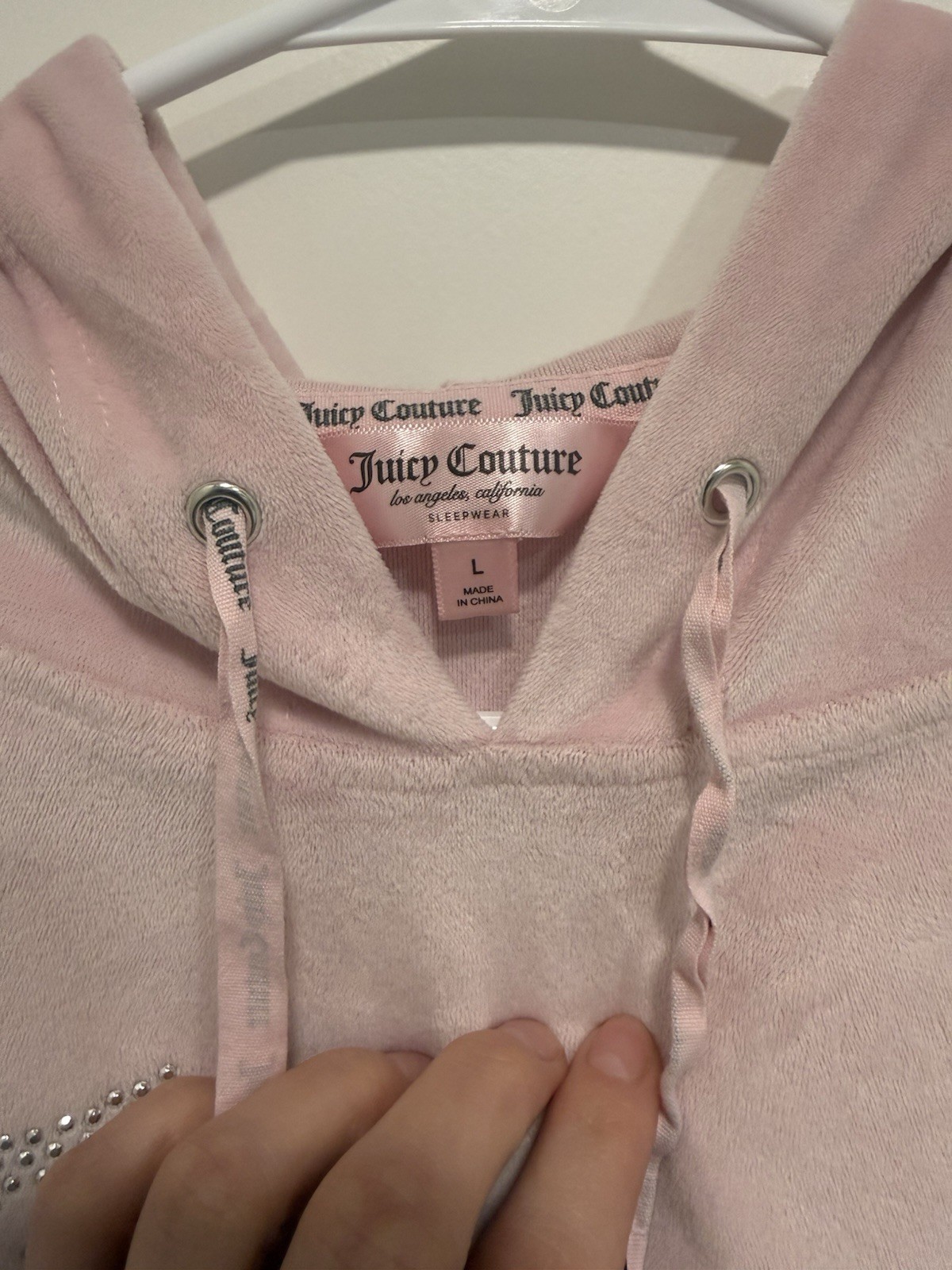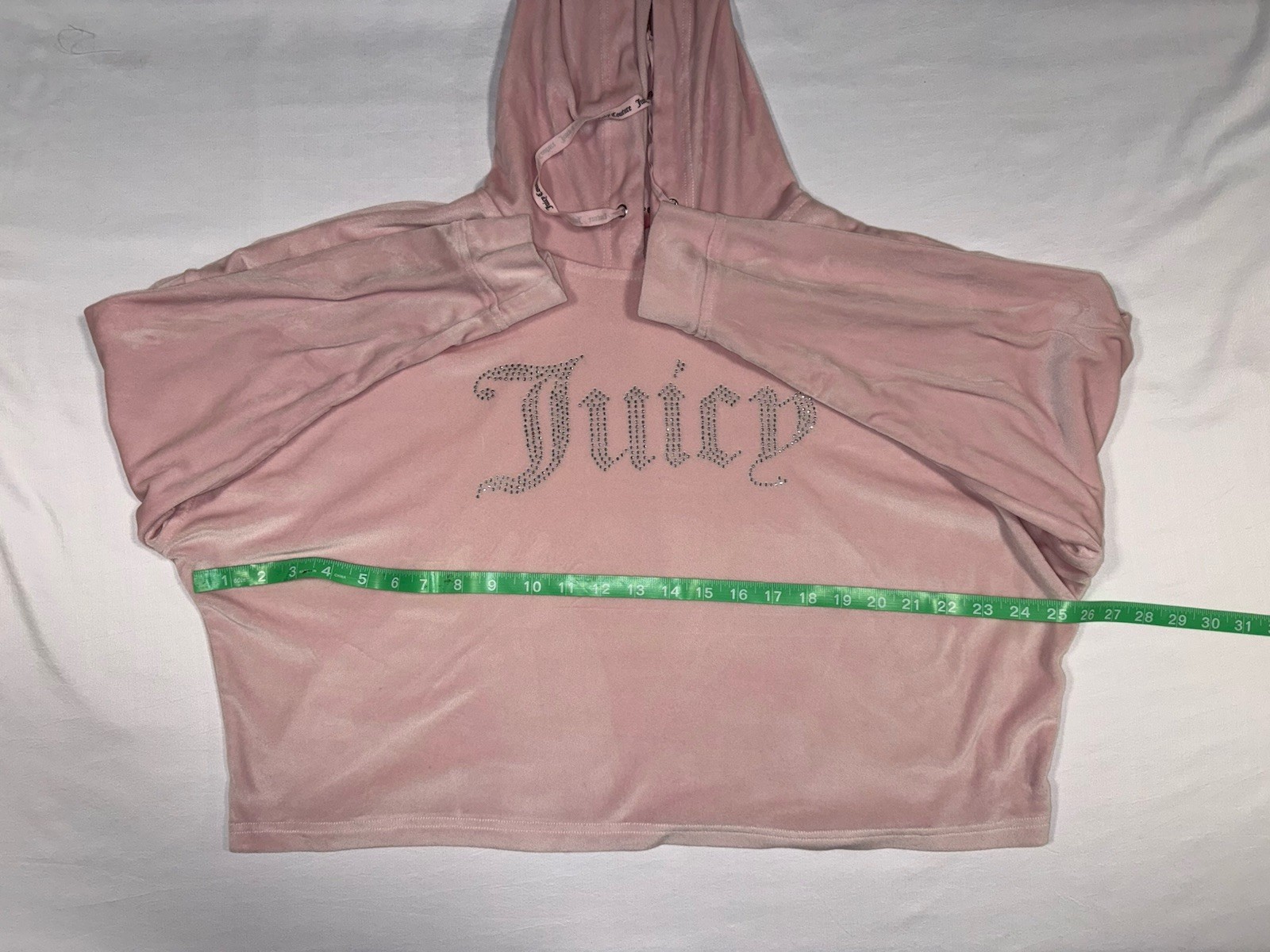 как выглядит Juicy Couture Pink Velour Cropped Hoodie Sleepwear Rhinestone Logo Size L Y2k фото