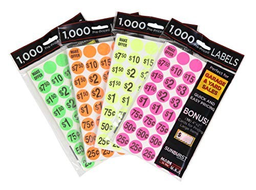 Garage Sale Stickers 4000 Count - Pre-Priced Color Labels, Blank Price Dots, Yar