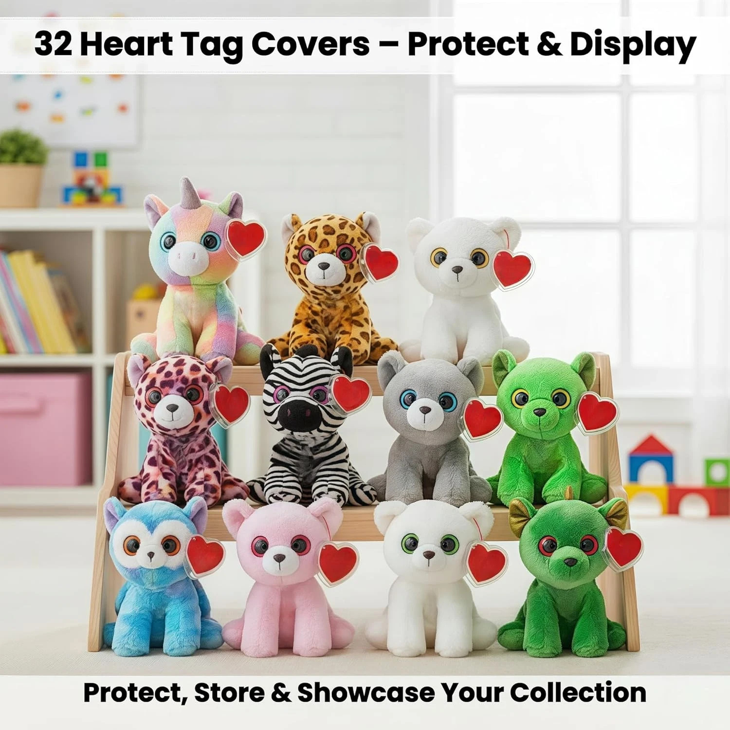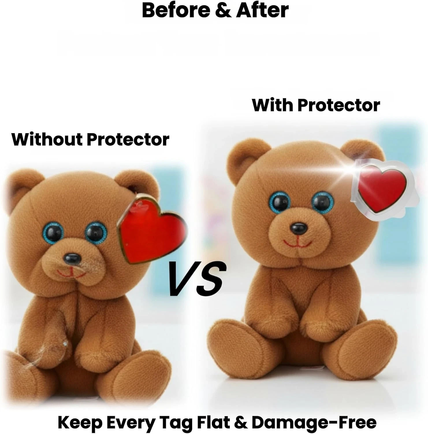 32-Pack Beanie Baby Tag Protectors Clear Plastic Heart Tag Covers for Ty Hang