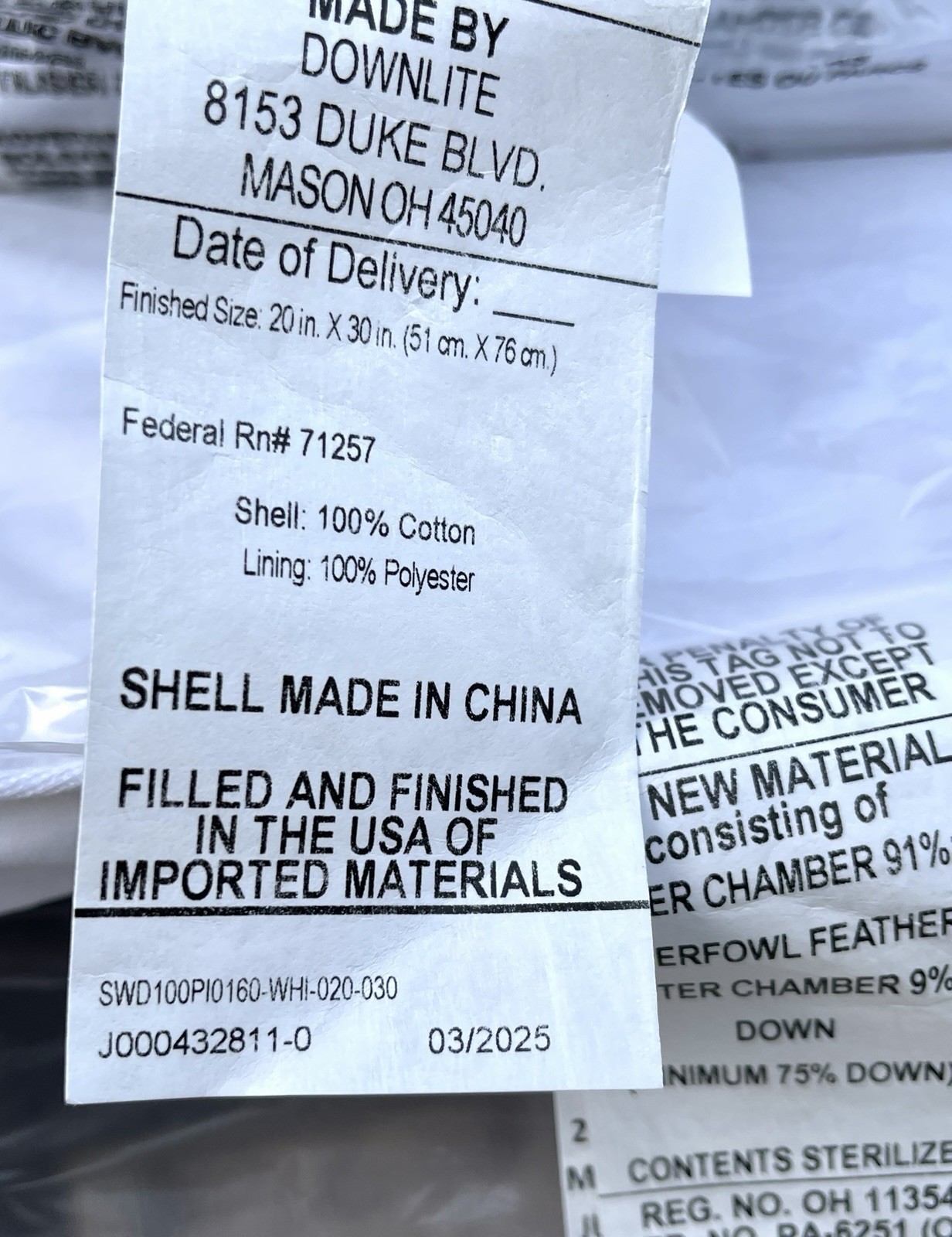 Two DOWNLITE Feather Down Hospitality PC10003 5/95 Soft/Medium 230 Thread