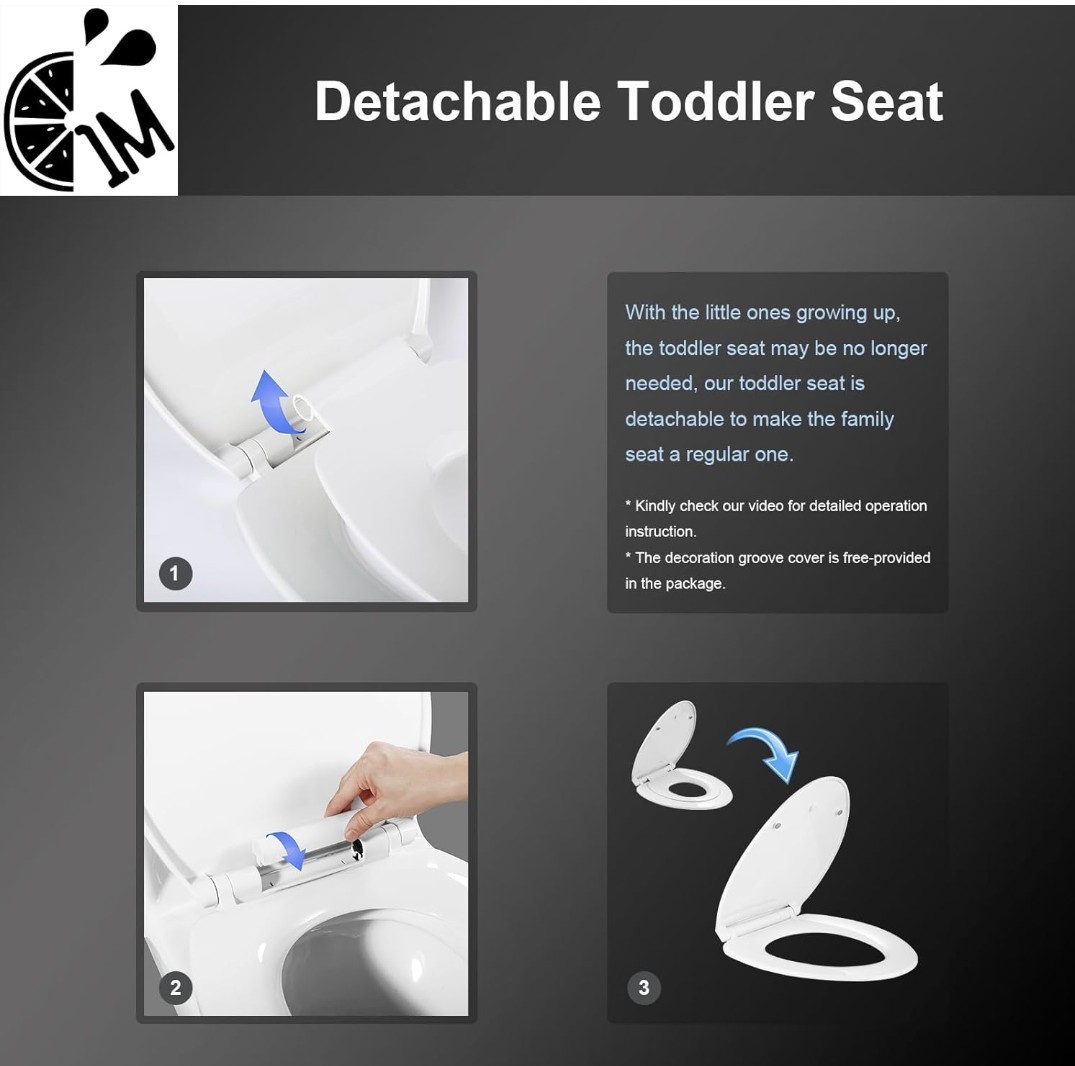 NEW Set of 2 Elongated Pack Toilet Seat with Toddler Seat Built in, Potty Train