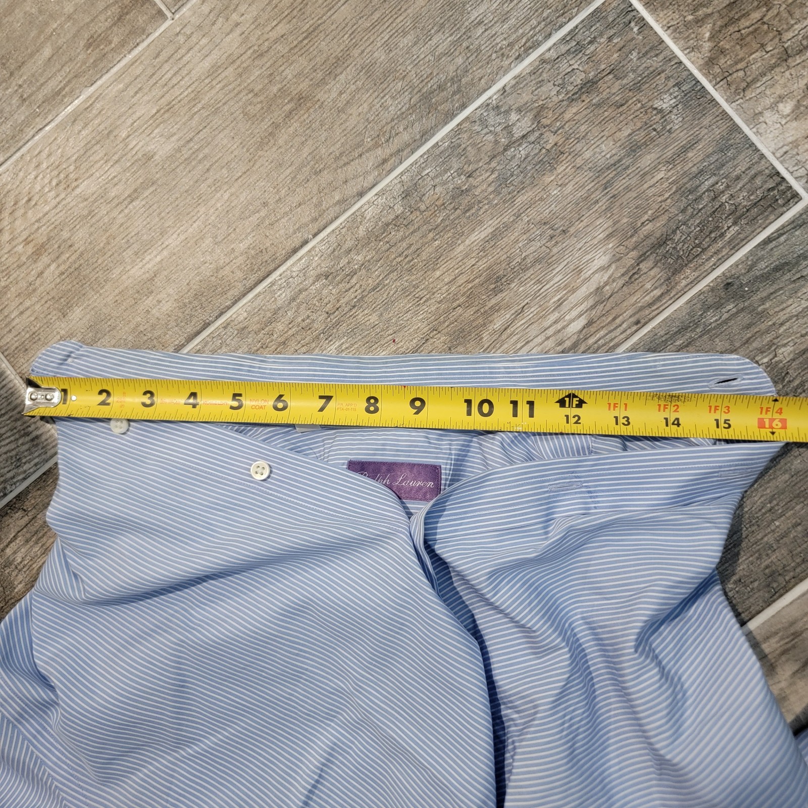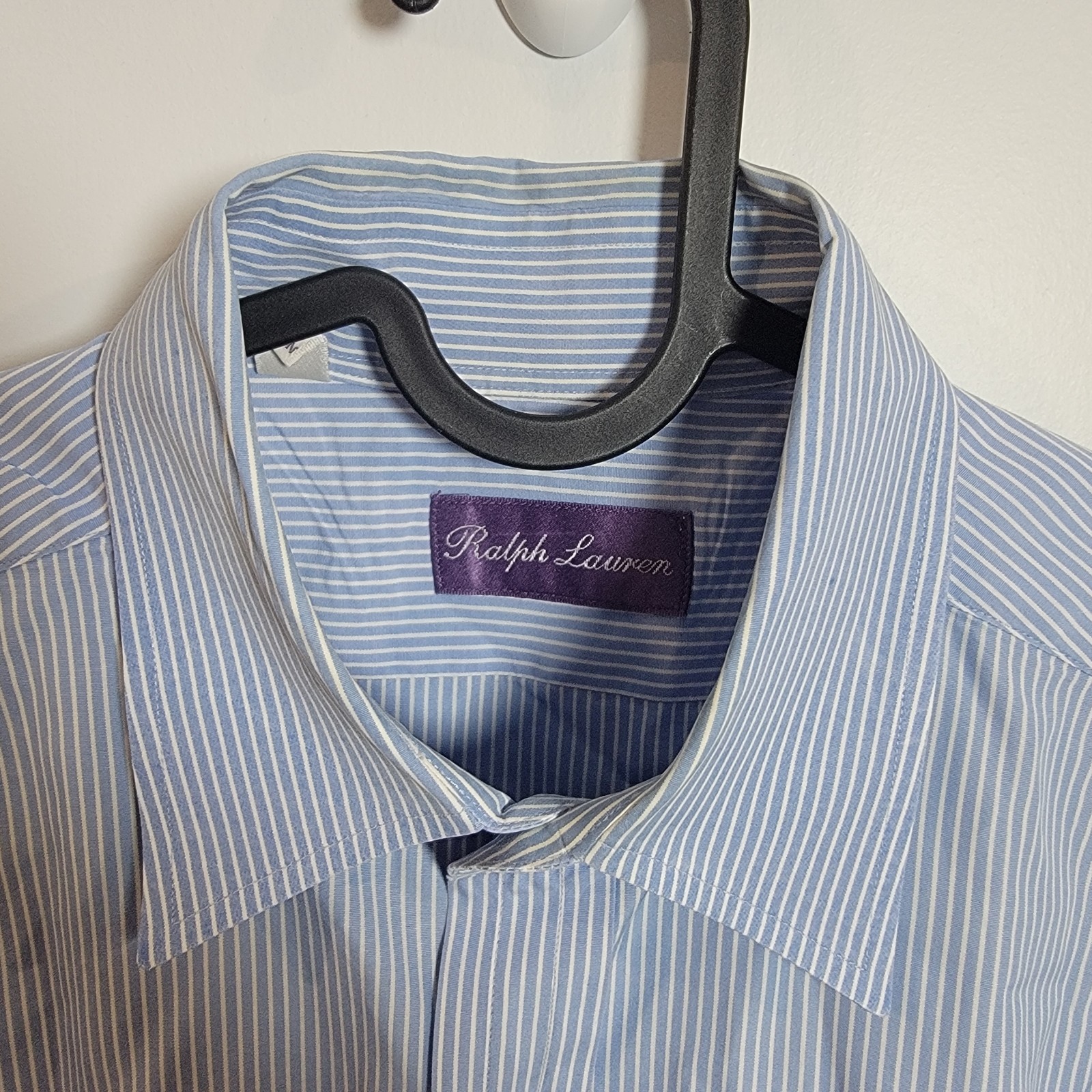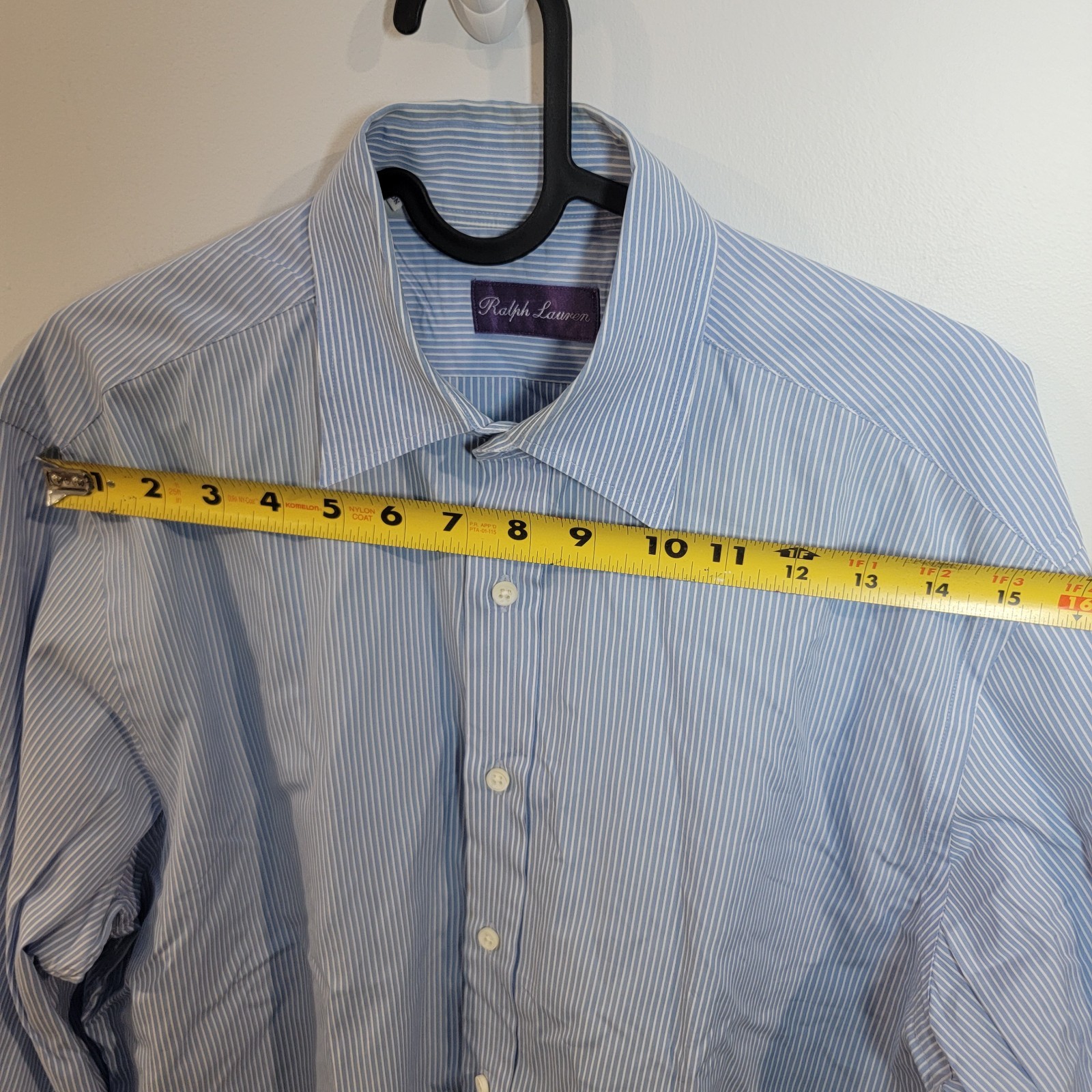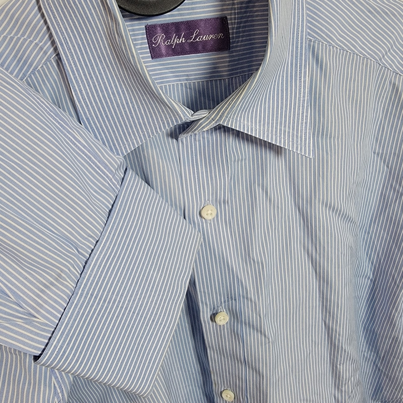 как выглядит Ralph Lauren Purple Label French Cuff Dress Shirt Mens Sz 16 Blue Striped Luxury фото
