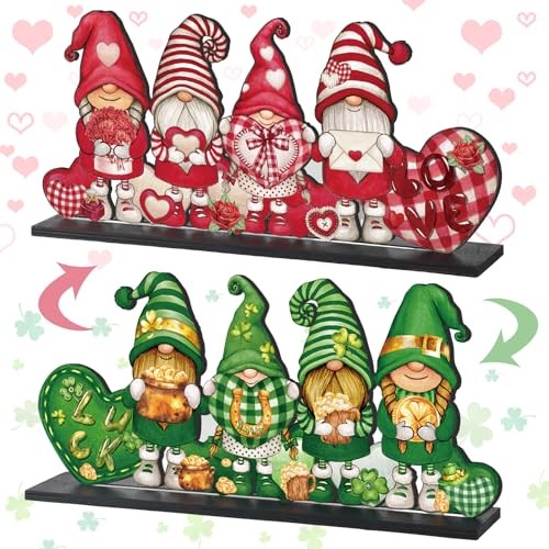 Valentine's Day and St. Patrick's Day Reversible Gnome Wood Signs Stylish