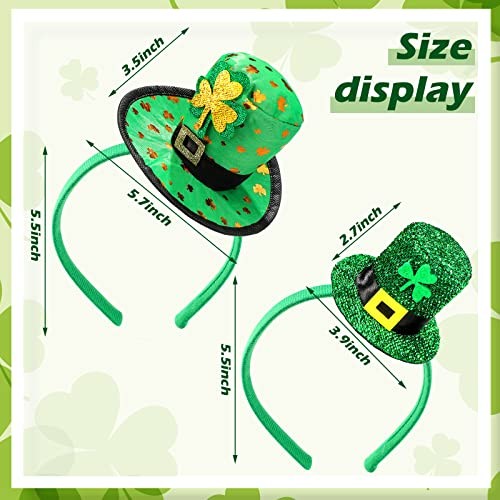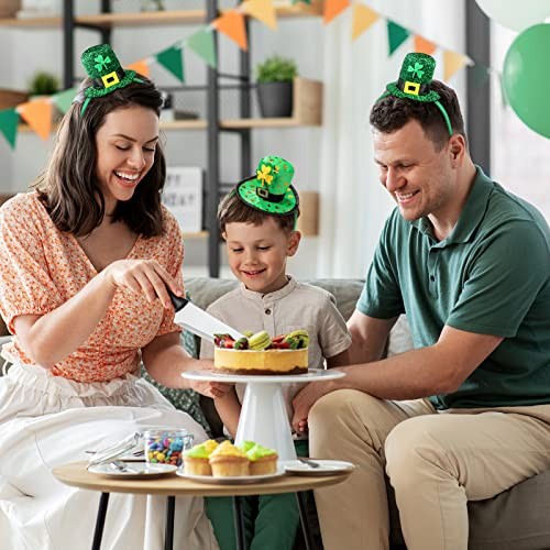 MTLEE 2 Pieces St. Patrick's Day Headband Green Top Hat Headband Irish Sequin