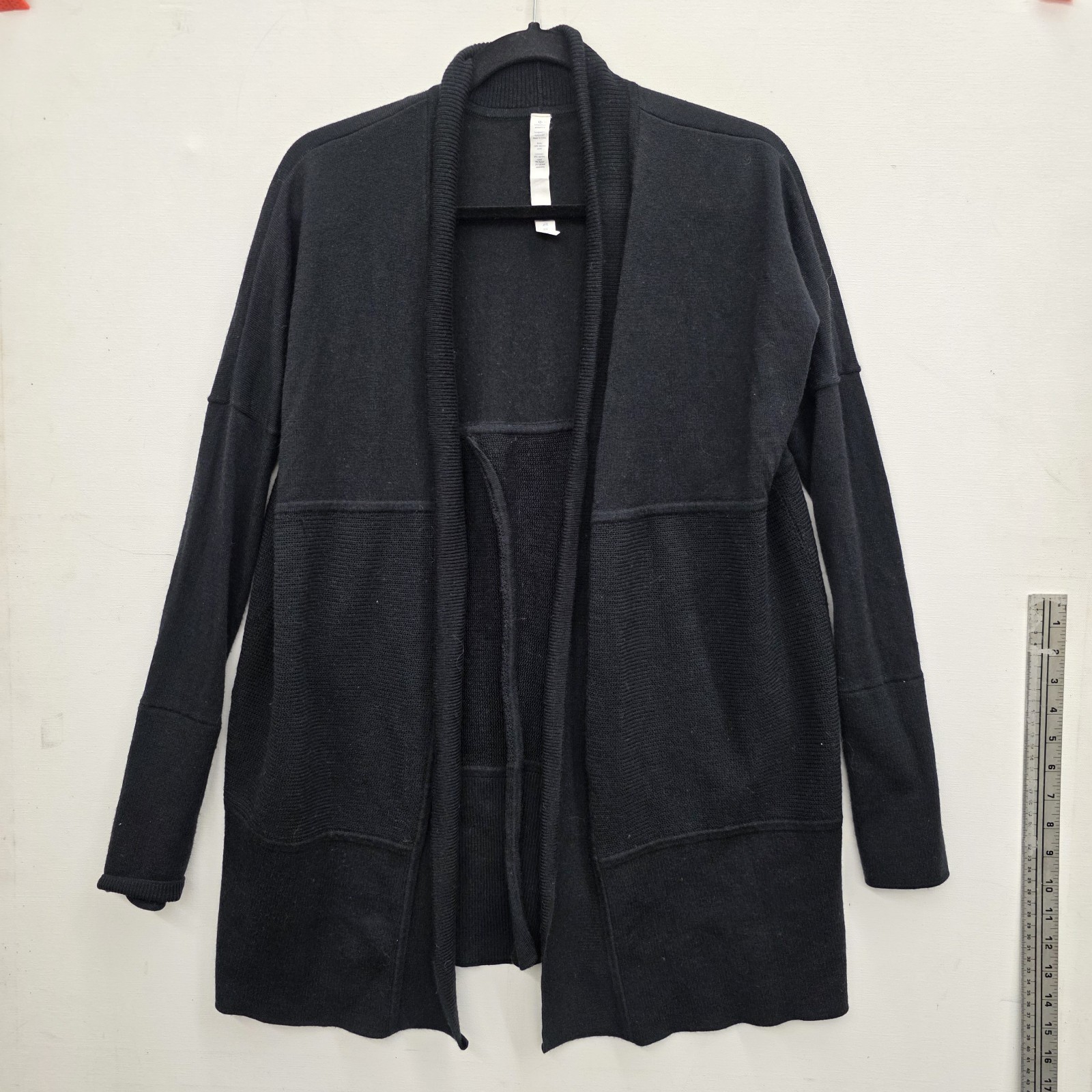 как выглядит Lululemon Merino Wool Sit In Lotus Split Back Black Cardigan Sweater Size 6 фото