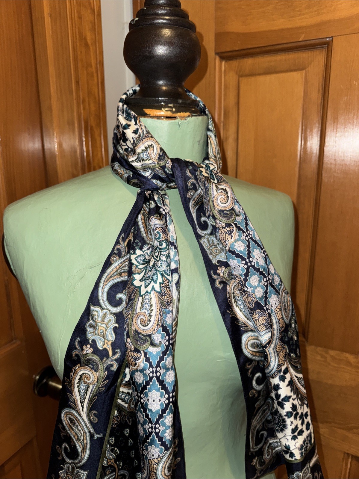 как выглядит Oscar de la Renta Navy Silk Scarf Floral Paisley Print Vintage Square Neck Scarf фото