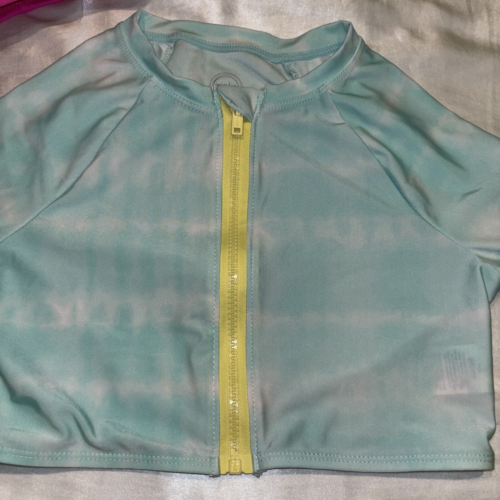 Wonder Nation Tie Dye Sky Blue Rash Guard Top shirt 1pc Swimsuit With UPF 50