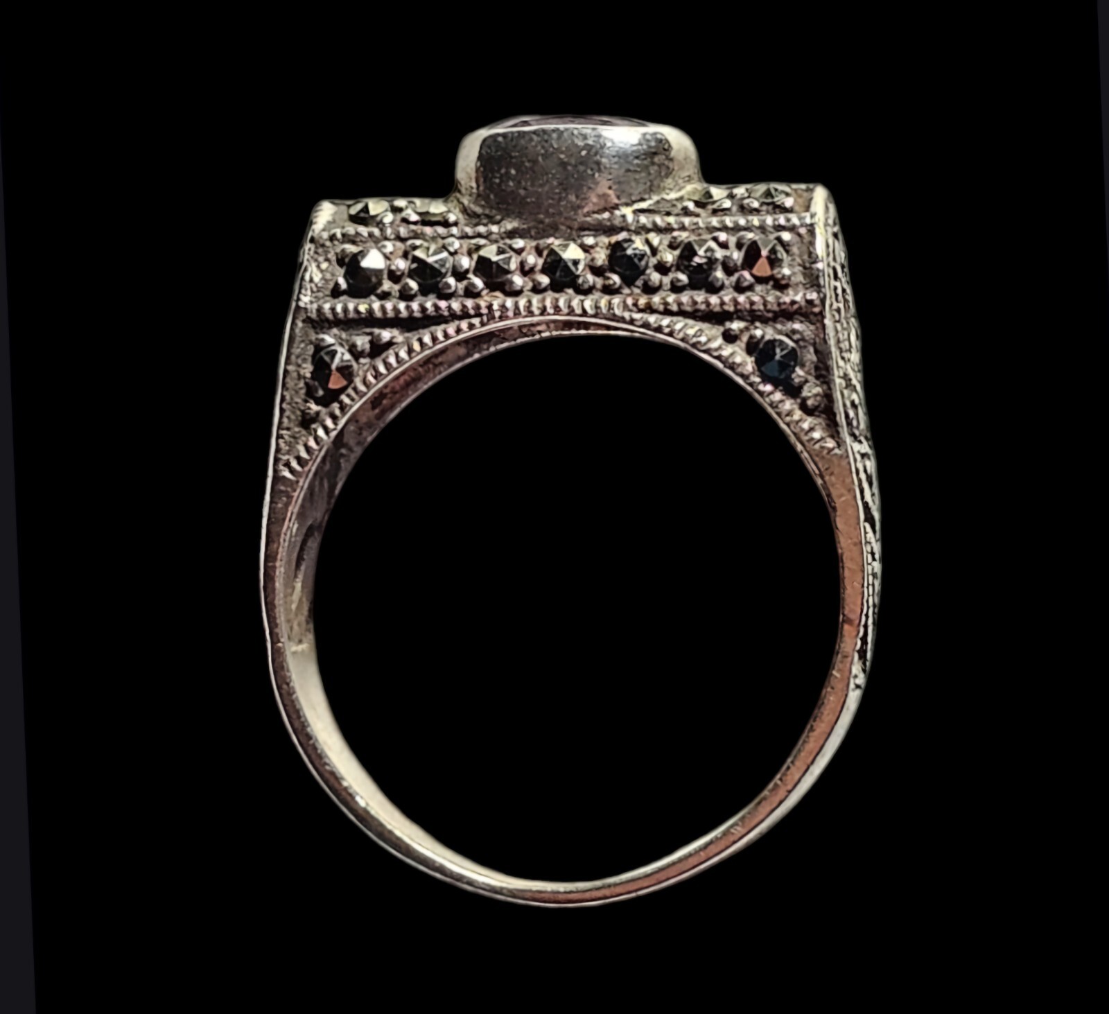 как выглядит Vintage Amethyst Gem Marcasite Stone 925 Sterling Silver Ring Sz 8 5g фото