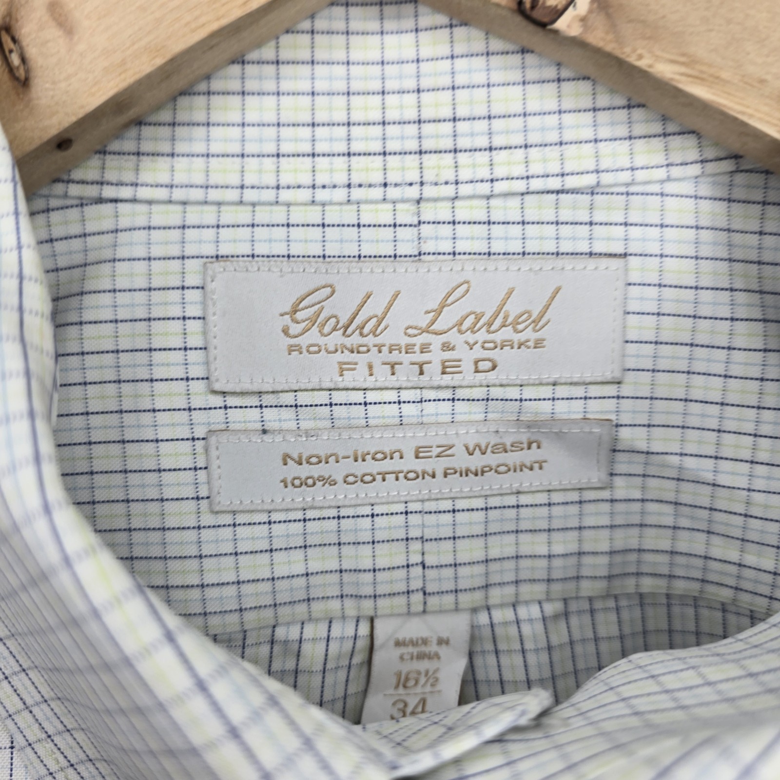 Roundtree Yorke Gold Label Dress Shirt Mens 16.5 34 Fitted Non Iron EZ Wash
