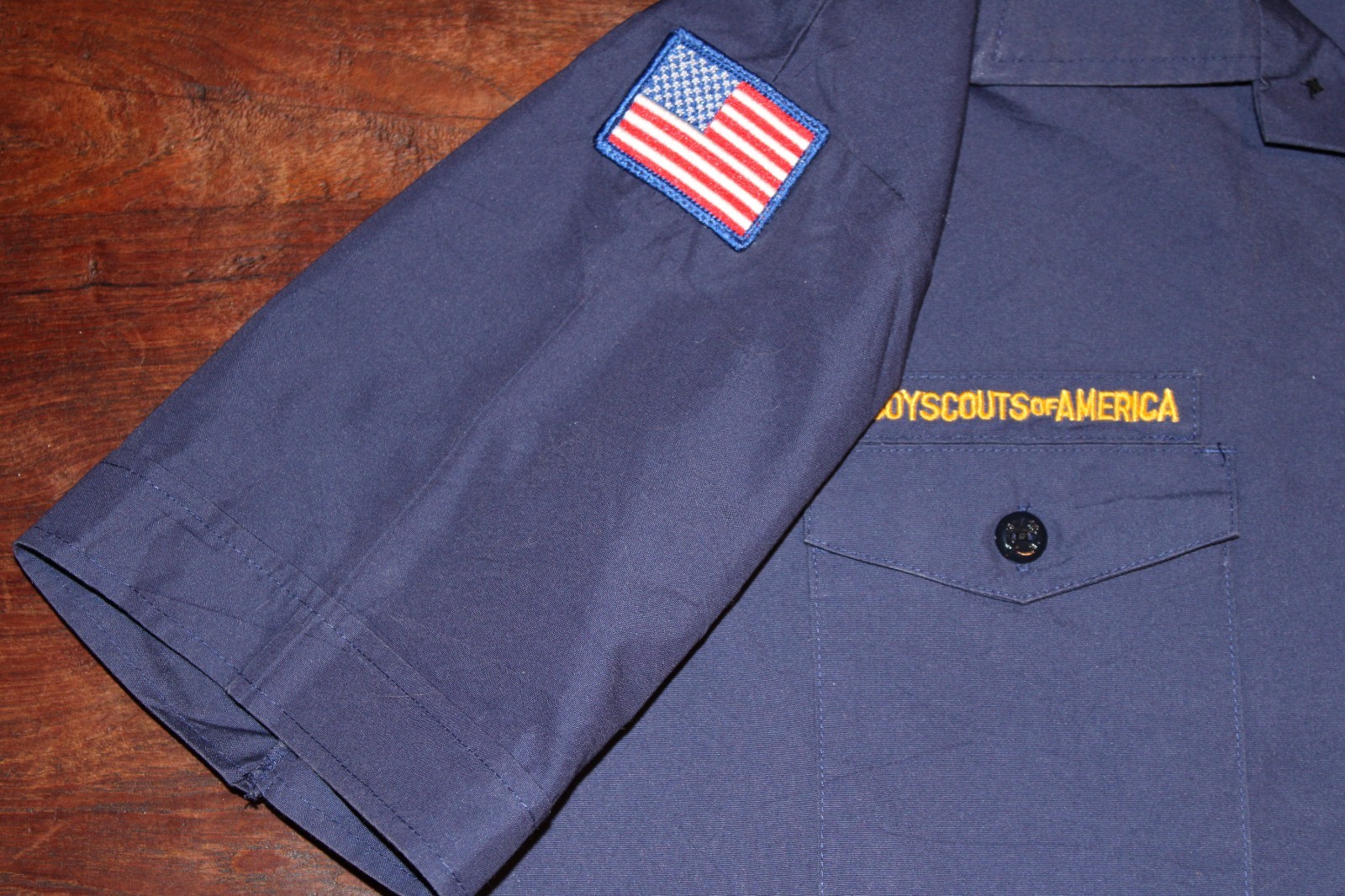 как выглядит Boy Scouts of America BSA Youth Shirt Blue X-Large XL Sewn Patches Short Sleeve фото