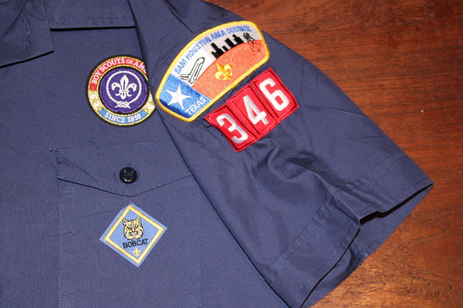 Boy Scouts of America BSA Youth Shirt Blue X-Large XL Sewn Patches Short Sleeve