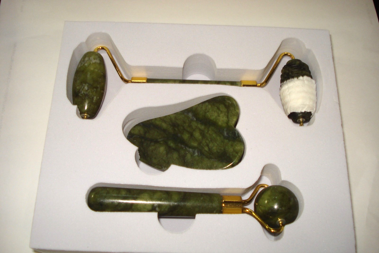 как выглядит Jade Roller Gua Sha 3-in-1 Anti-Aging Facial Massage Gift Set New фото