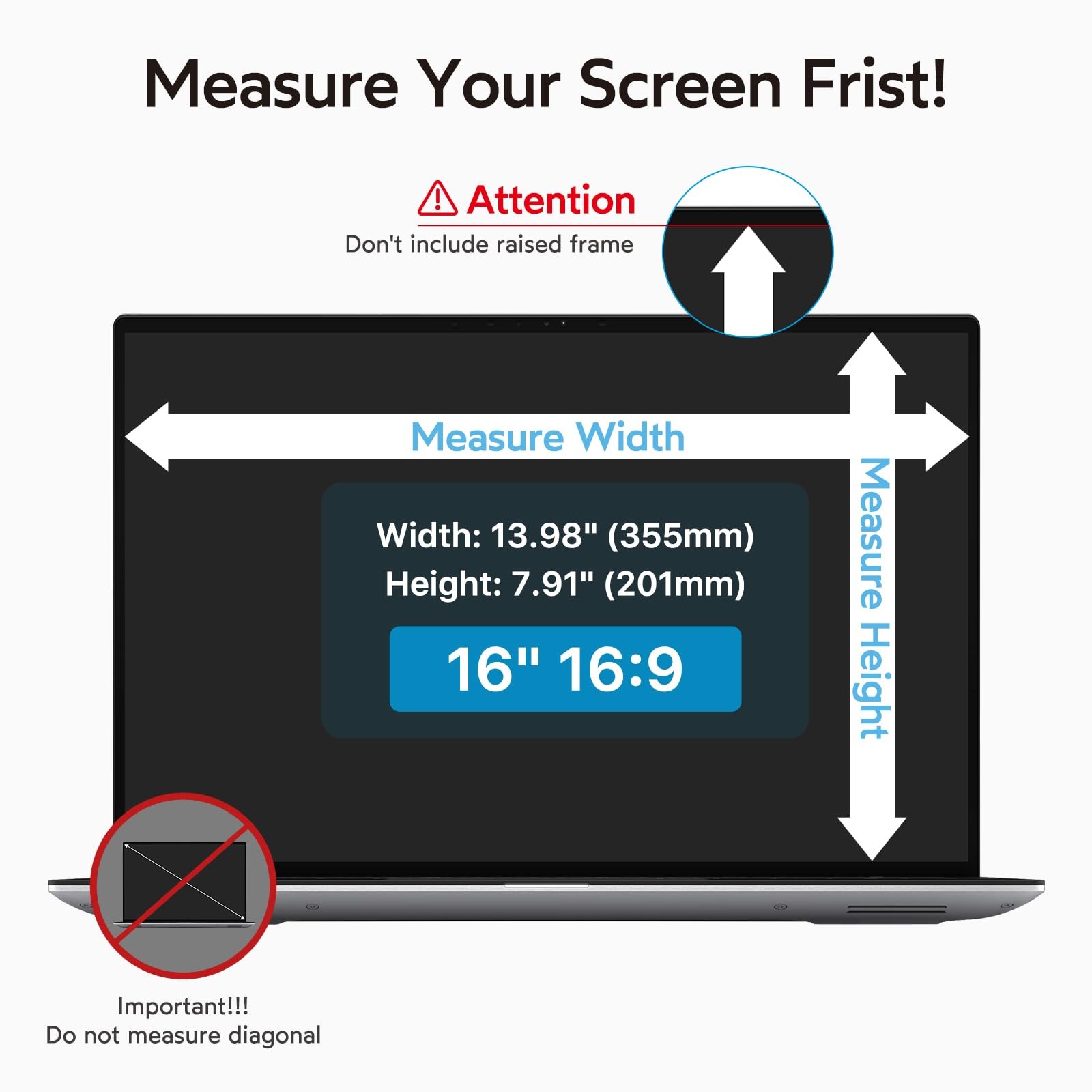 16 Inch Laptop Privacy Screen Filter for 16:9 Aspect Ratio, Anti-Glare, Anti-...