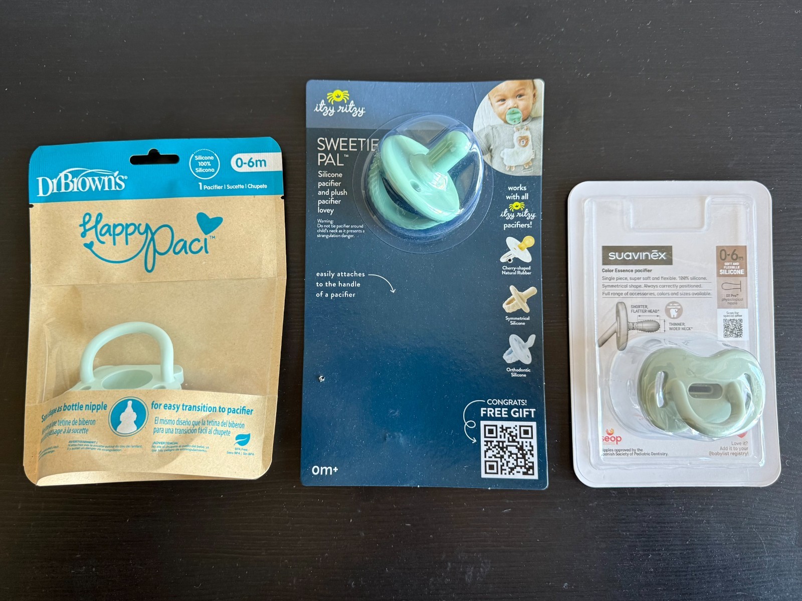 Lot 6 0 Month Pacifiers Dr. Brown's Itzy Ritzy Suavinex AEIOU P BIBS Ivory NEW