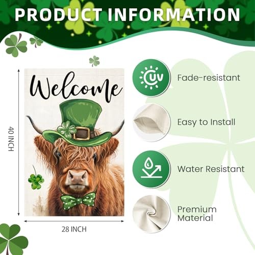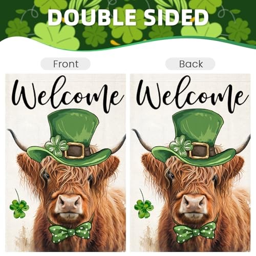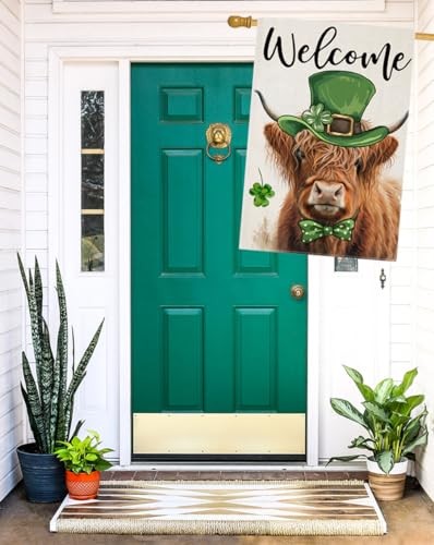 Welcome St Patricks Day House Flags for Outdoor Decoration, Highland 28x40 Inch