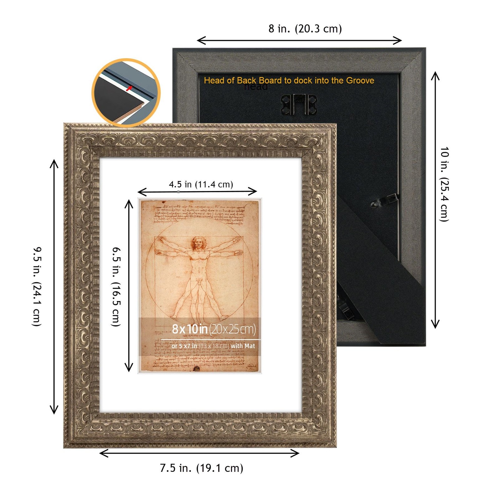 WYNCO 8x10 in Antique Champagne Gold Grey Ornate Classic Picture Frame, Matte...