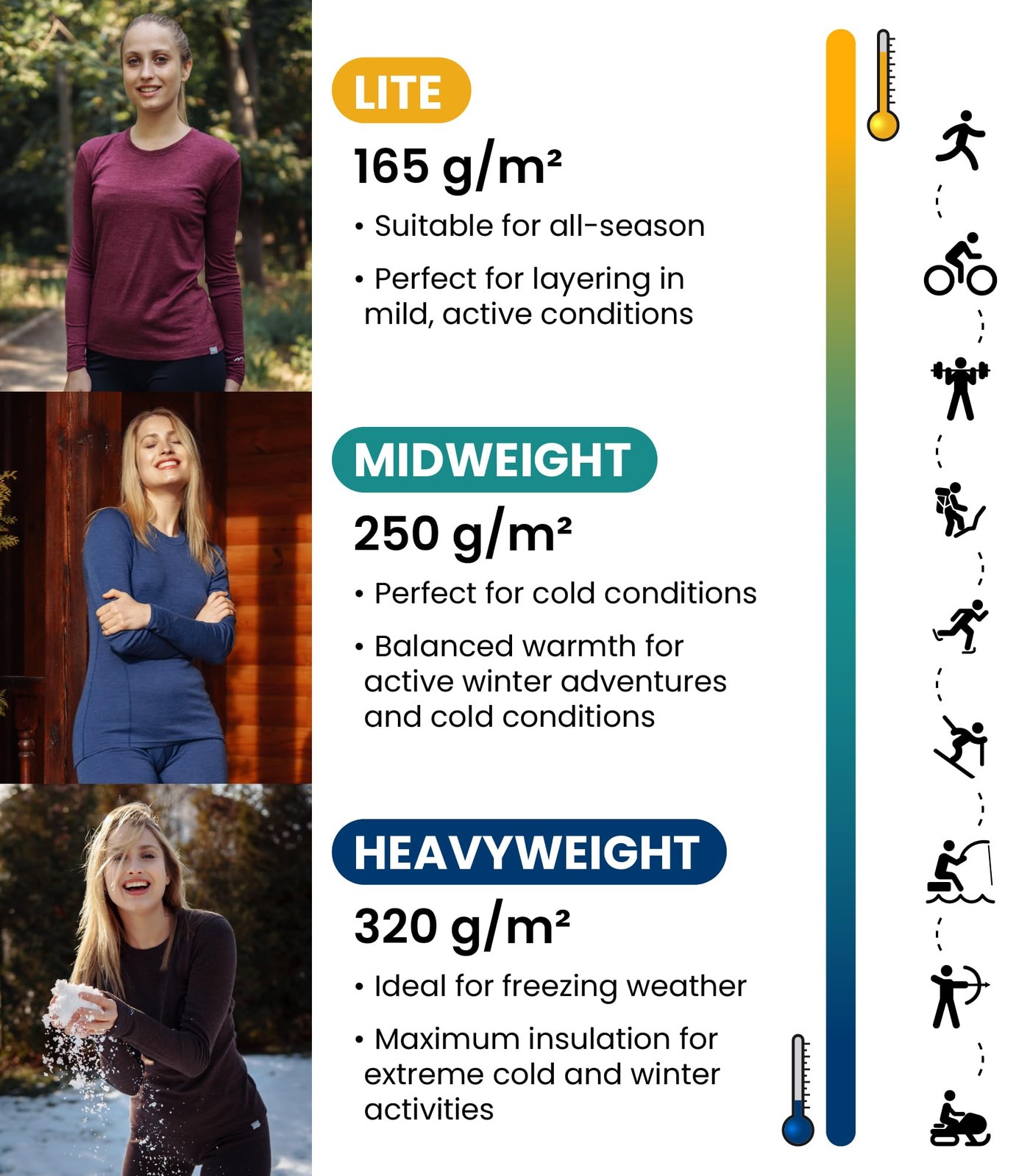 Merino Wool Base Layer Women Pants 100 Merino Wool Leggings Heavyweight, Mid...