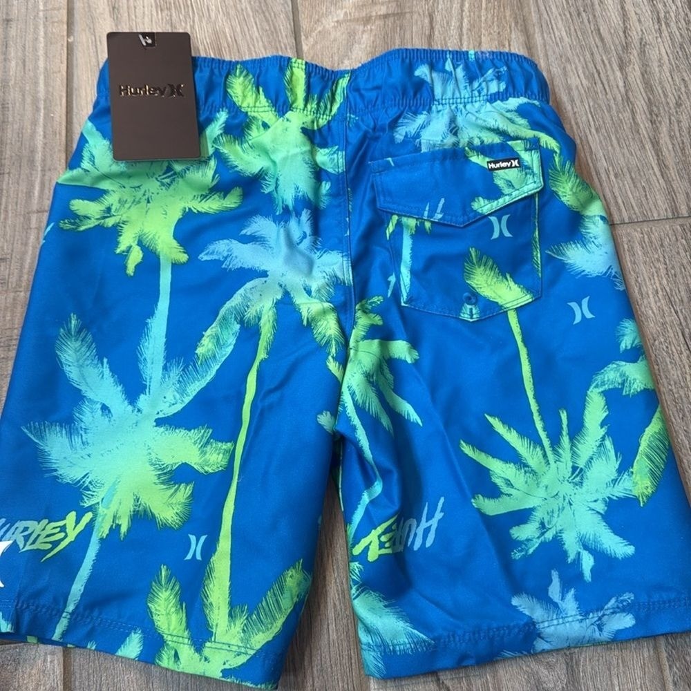 как выглядит NWT HURLEY Palms Boys Boardshorts Swim Electric Blue Size 6 Palm Trees фото