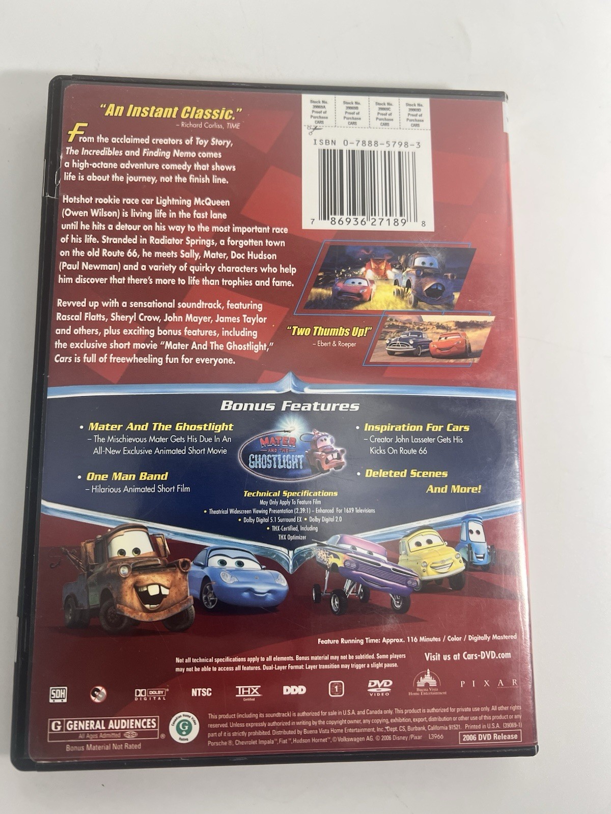 Cars DVD, 2006 Disney Pixar Widescreen FREE FAST SHIPPING