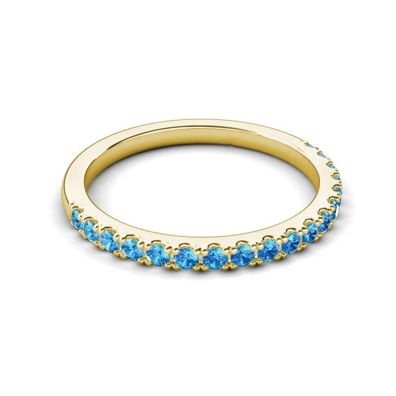 как выглядит Swiss Blue Topaz Round 2MM Stackable Half Eternity Ring With Yellow Gold Plated фото