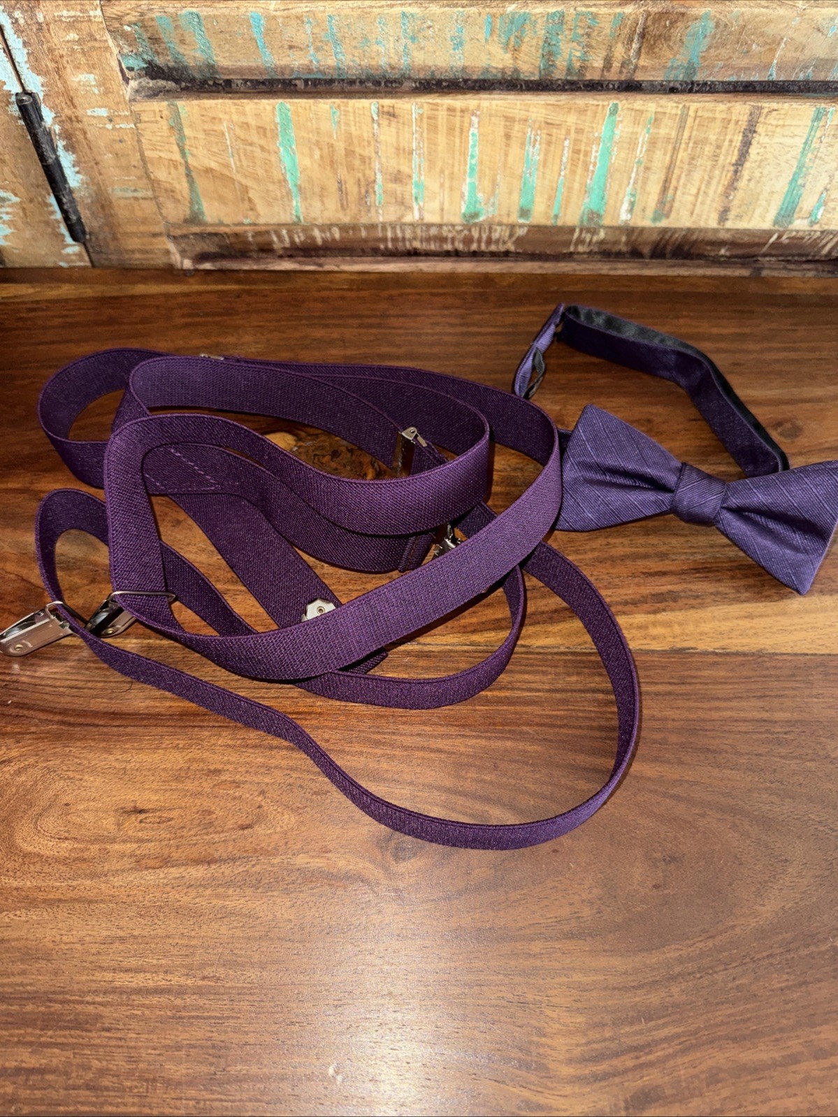 Purple Bow Tie With Suspenders Adjustable