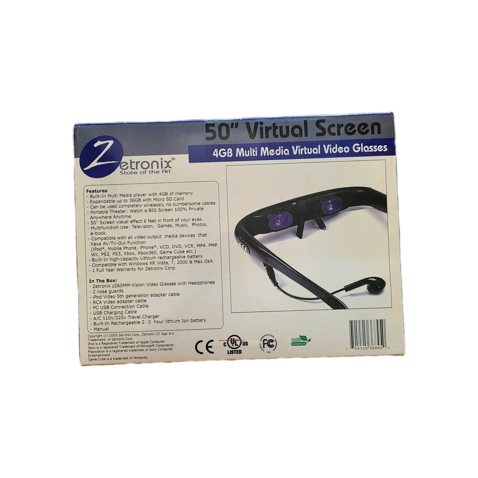 Zentronix 4GB Multi Media Virtual Video Glasses Z260MM-VISION