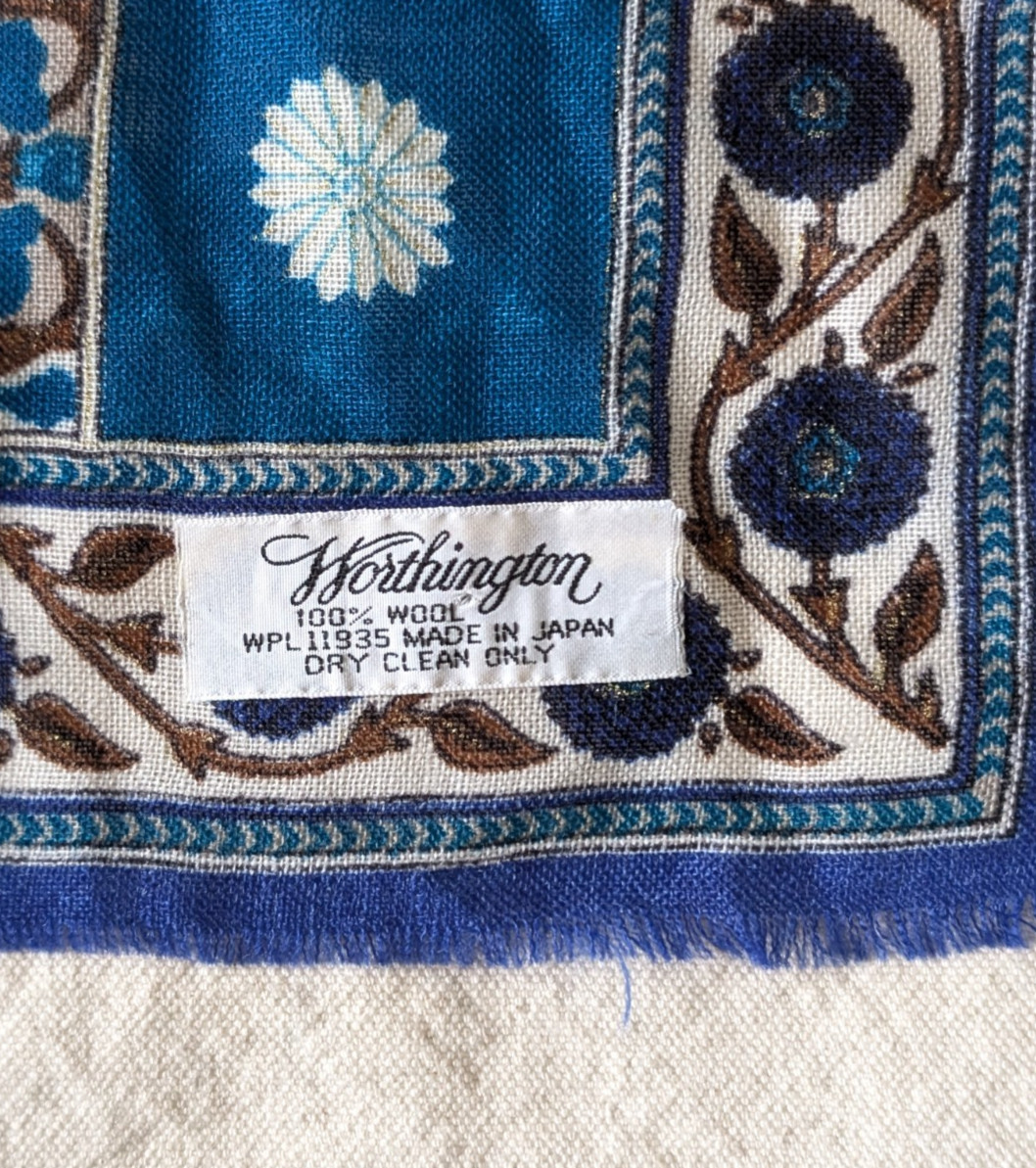 Vintage Ornate Worthington Fine Wool Woven Scarf 60s Japan Made Classic 33
